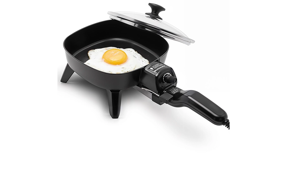 600W Rapid Heat Non-Stick Skillet with Tempered Glass Lid
