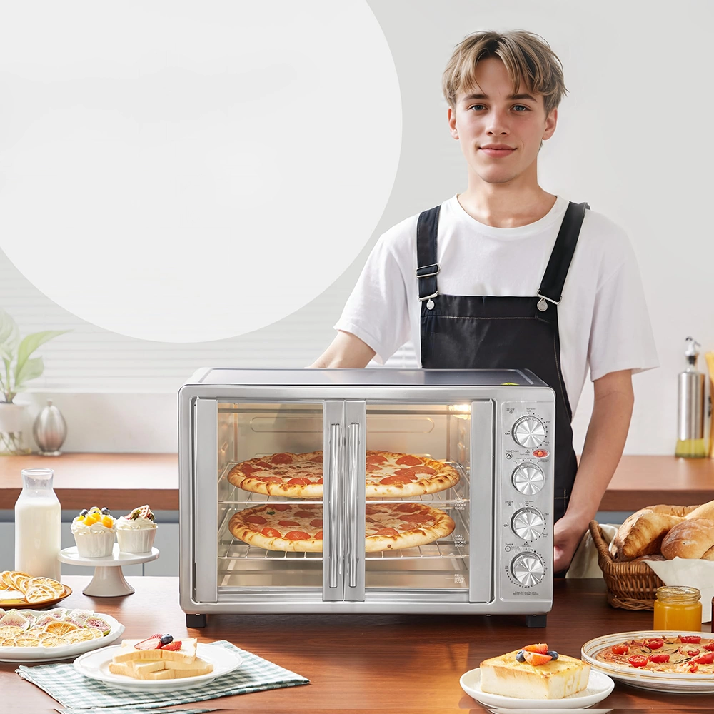 Elite Gourmet ETO-4510M French Door 47.5Qt, 18-Slice Convection Oven 4-Control Knobs, Bake Broil Toast Rotisserie Keep Warm, Includes 2 x 12″ Pizza Racks, Stainless Steel(18-Slice 45L)