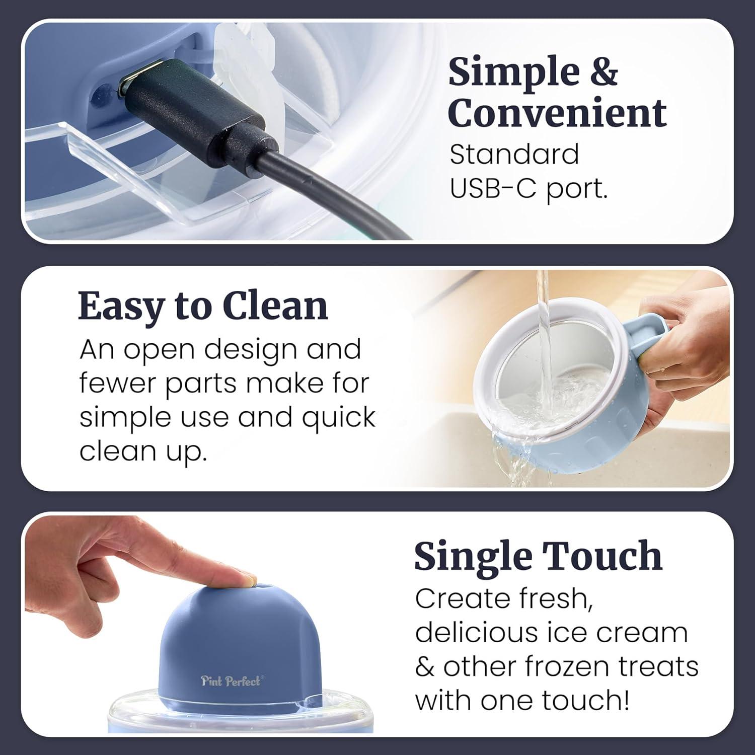 Americana by Elite Pint Perfect™ EIM1205DB Ice Cream Maker, 2 x 1 Pint Capacity Dual Freezing Mugs, Frozen Yogurt, Sorbet, Gelato, Recipes, Periwinkle(Periwinkle)