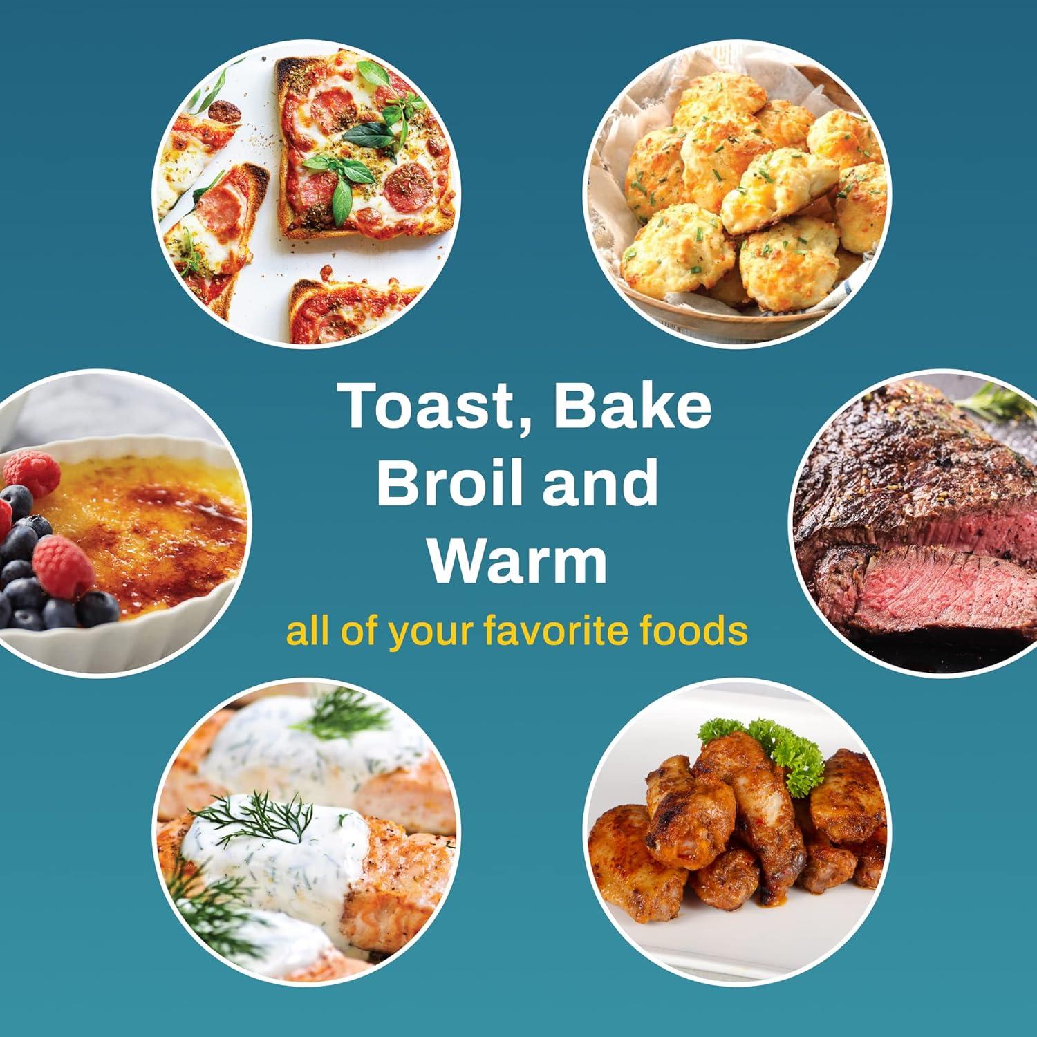 FULL FUNCTIONING TOASTER OVEN: Bake a frozen pizza or chicken tenders, broil a filet of fish or simply toast up some delicious garlic bread!