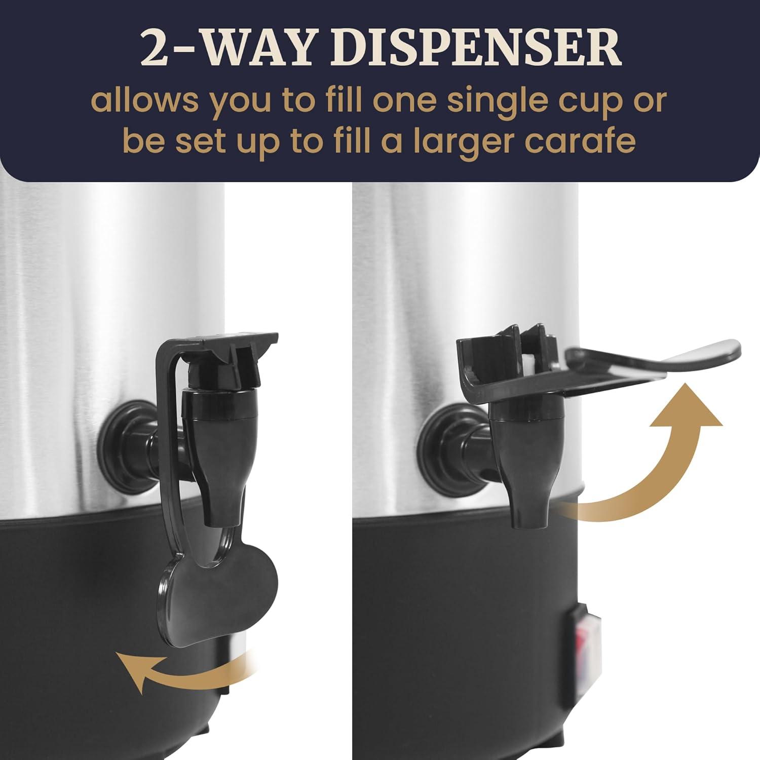 CONVENIENT 2-WAY DISPENSING: Allows guests to fill one single cup with a quick flip of the lever. Or flip the lever completely down to continuously fill a larger carafe.