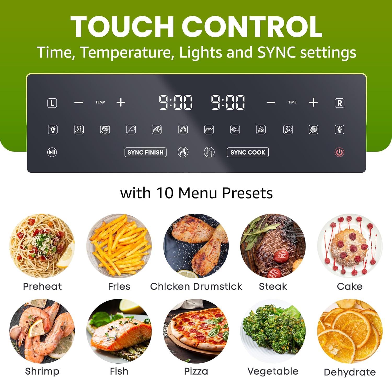 HEALTHY EATING by cooking with 85% less oil for fat-free delicious meals. Same flavor and crispy finish without the added calories. Simply add food to the drawer pan, add a tbsp of oil if desired, set temp/time, and start cooking.