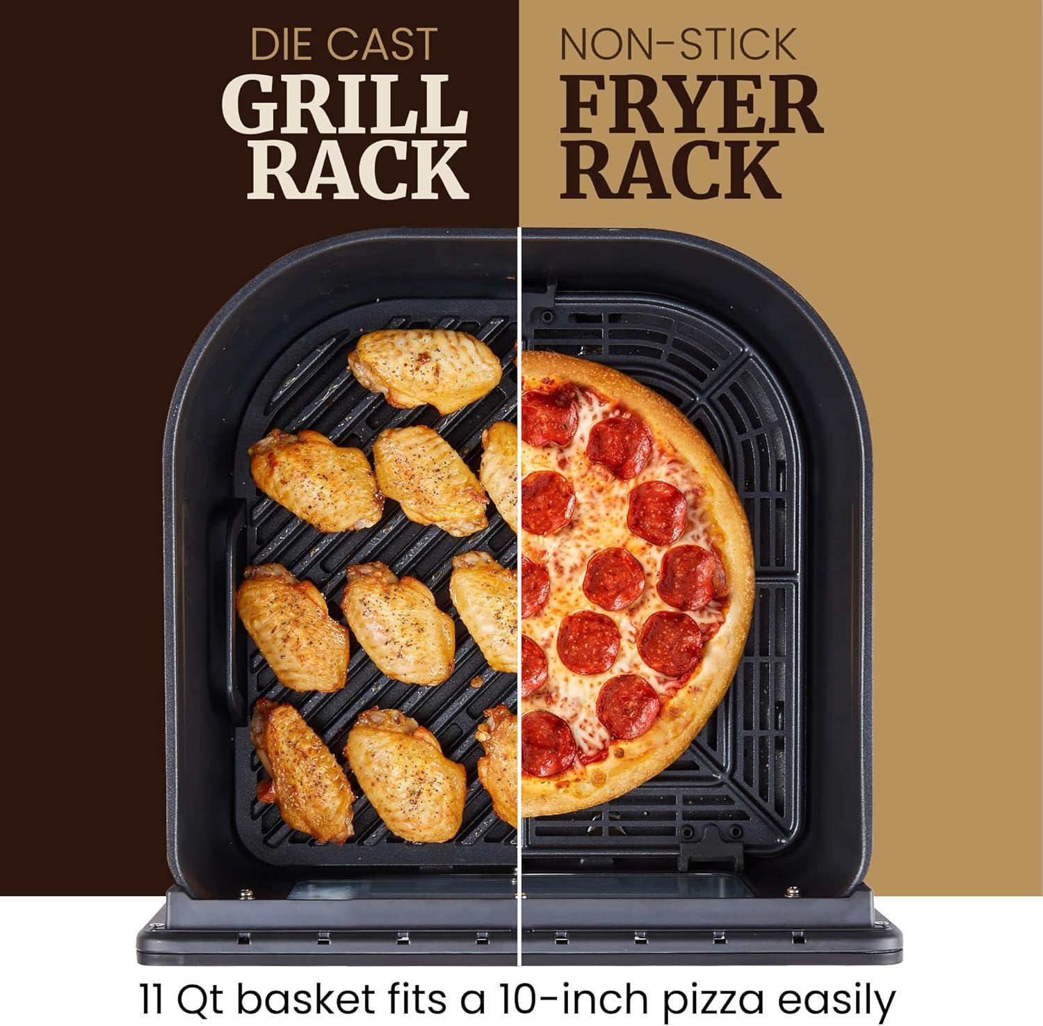 COMPACT SIZE: The non-stick pan and rack hold 2.1Qt or up to 1.5lb of food Perfect for personal use or when cooking for a few. Cook faster and more safely than in oil, eliminating splatter burns and reducing electricity use.