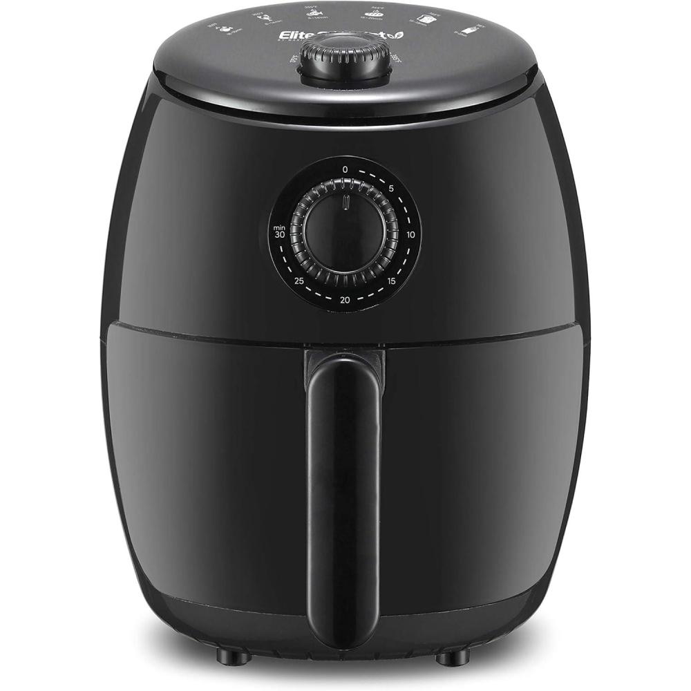 Elite Gourmet EAF-0201 Personal Compact Space Saving Electric Hot Air Fryer Oil-Less Healthy Cooker, Timer & Temperature Controls, 1000W, 2.1 Quart, Black(Black)
