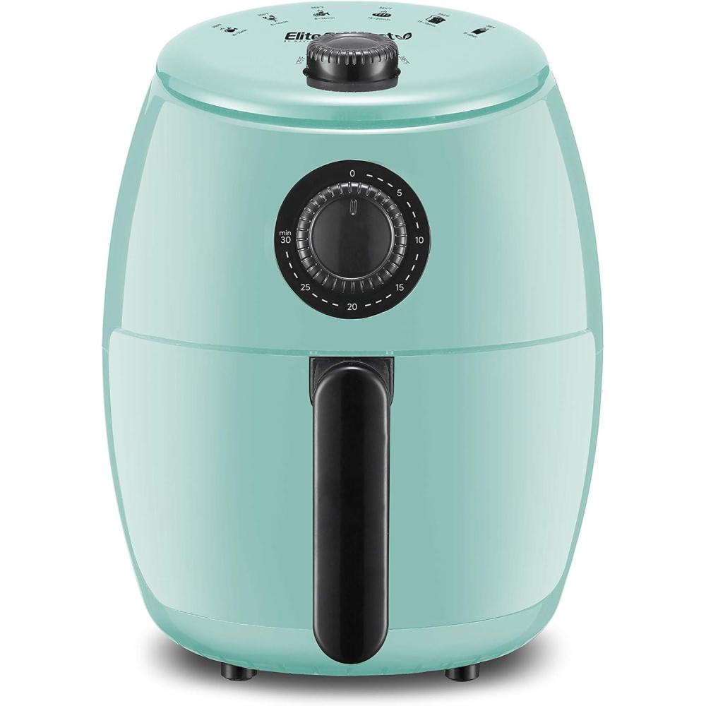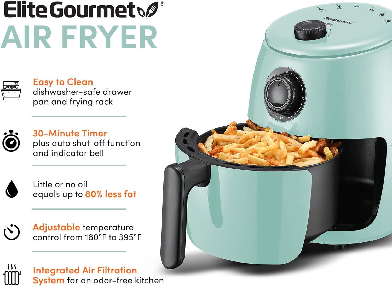 Elite Gourmet EAF-0201 Personal Compact Space Saving Electric Hot Air Fryer Oil-Less Healthy Cooker, Timer & Temperature Controls, 1000W, 2.1 Quart, Black(Mint)