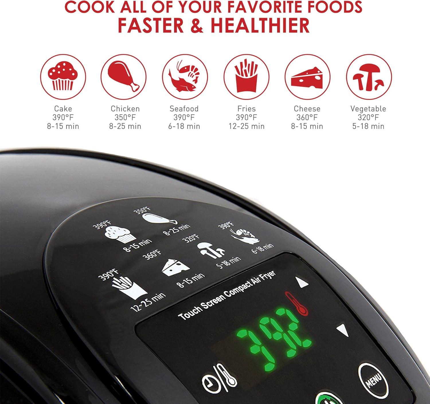 Elite Gourmet EAF5317D Digital 5.3Qt Hot Air Fryer 7 Menu Functions 1350W Oil-Less Healthy Cooker, Timer & Temperature Controls, PFOA/PTFE Free, Black(2.1 Quart)
