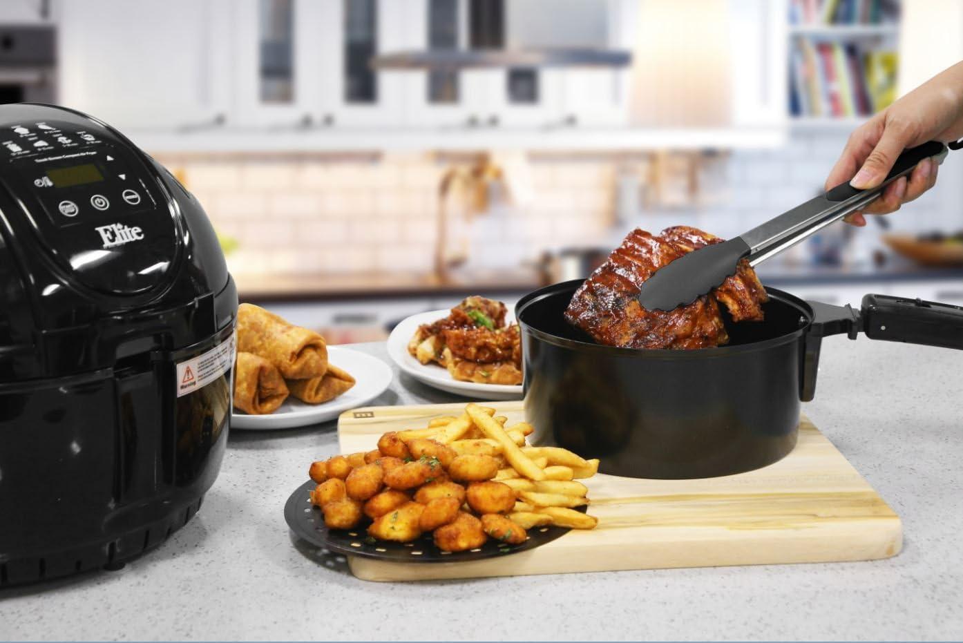 Fast, Easy Clean-up with our dishwasher safe, non-stick Coated 3. 5 quart fryer basket and 4. 75 quart pan. The exterior of the Elite platinum air fryer retains its pristine condition with just a damp cloth.