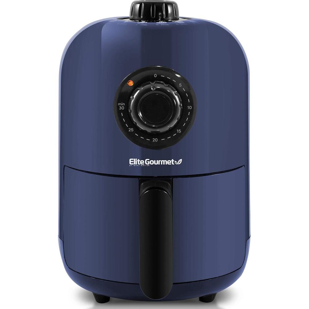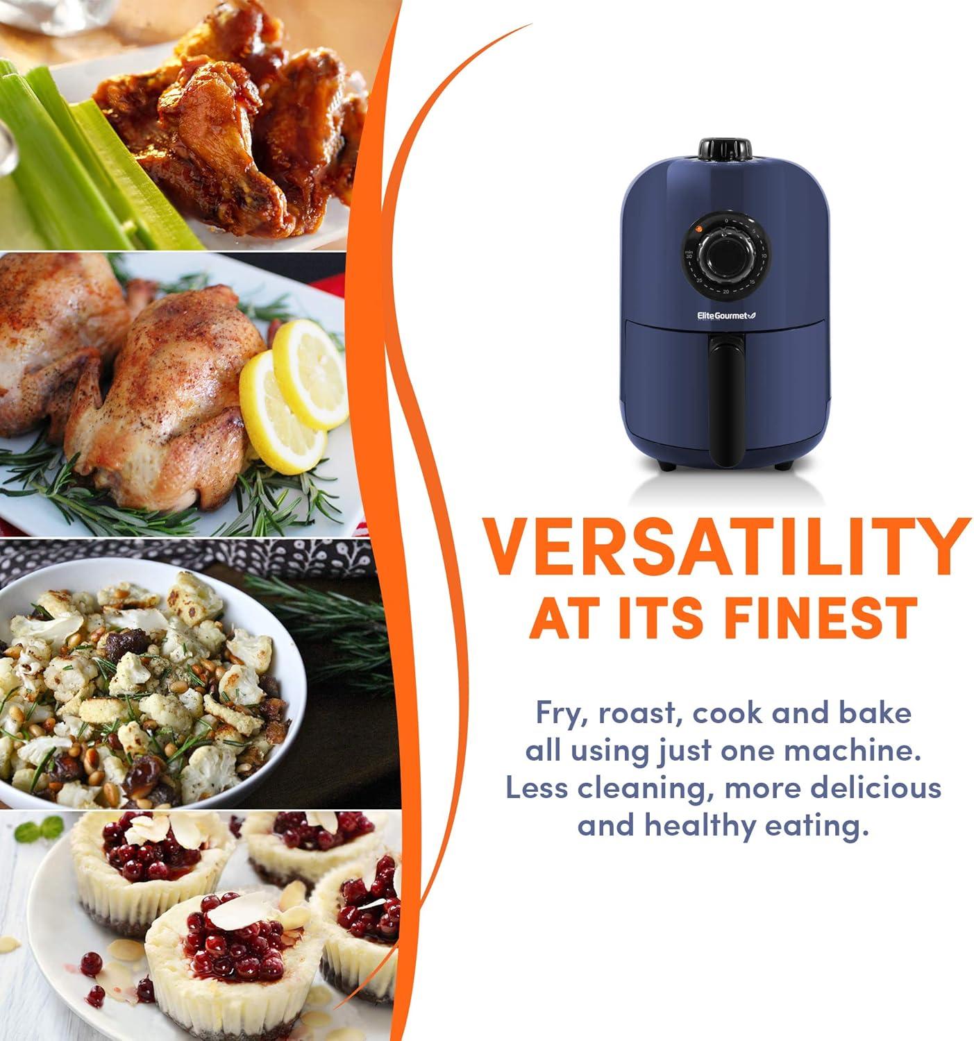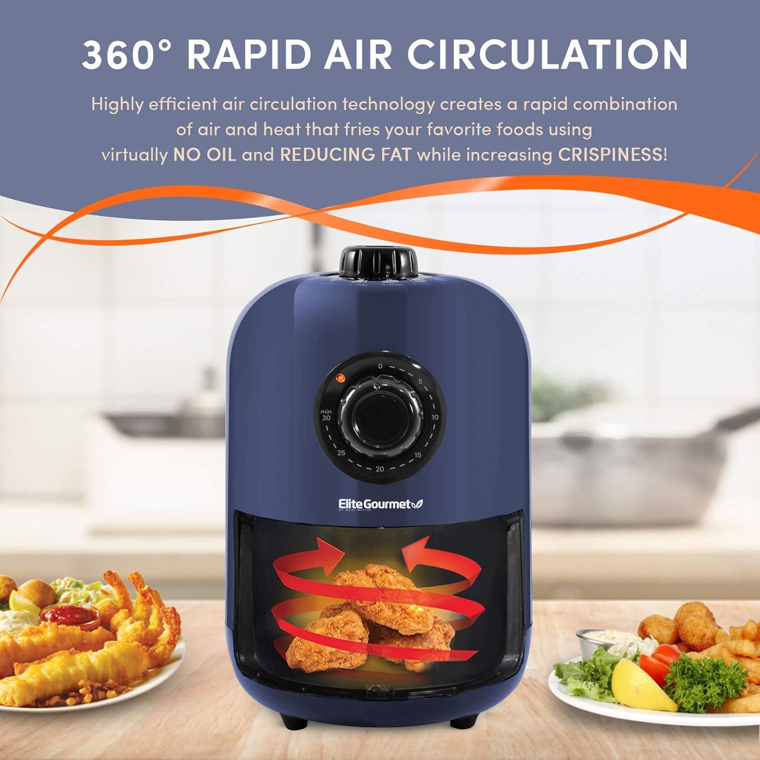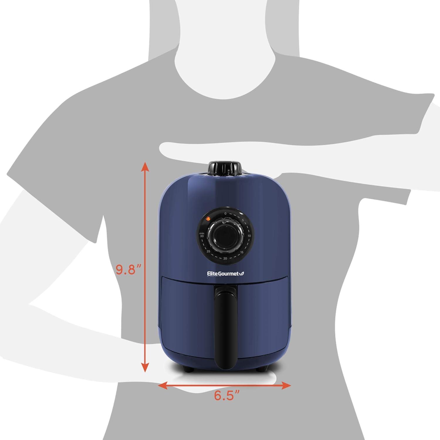 Elite Gourmet EAF-2612DX Personal 2.1Qt Compact Space Saving Programmable Hot Air Fryer, Oil-Less Healthy Cooker, Timer & Temperature Controls, 1000W, Black(Blue Gray)