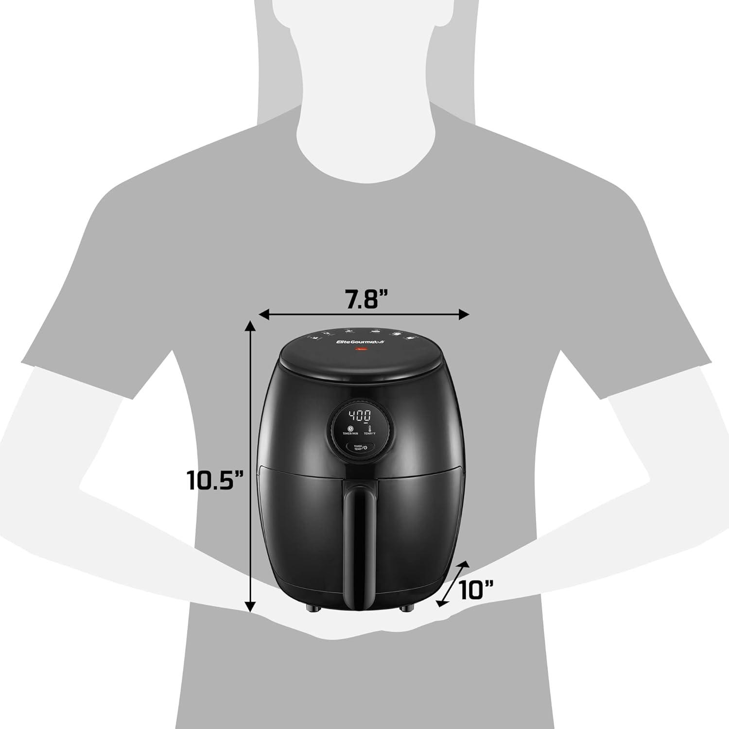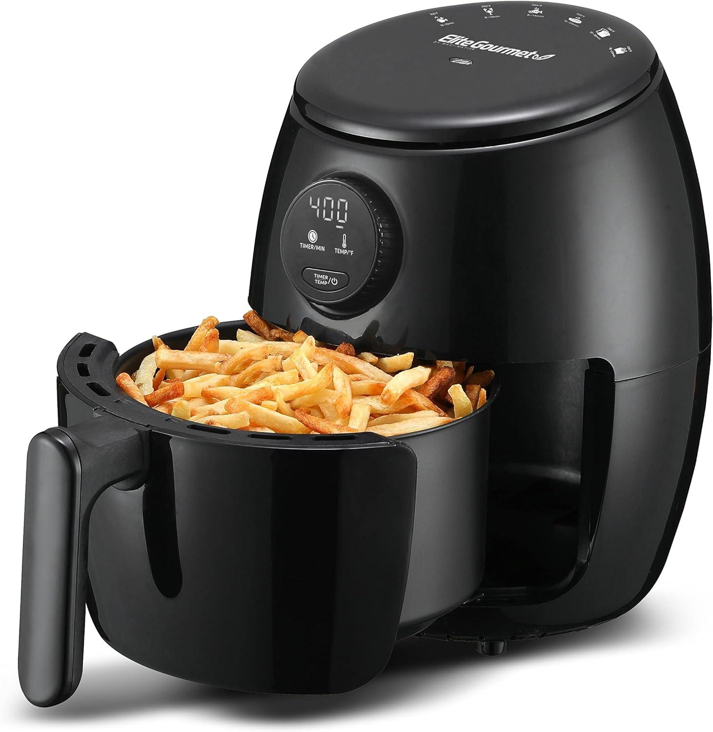Elite Gourmet EAF5317D Digital 5.3Qt Hot Air Fryer 7 Menu Functions 1350W Oil-Less Healthy Cooker, Timer & Temperature Controls, PFOA/PTFE Free, Black(2.1 Quart)