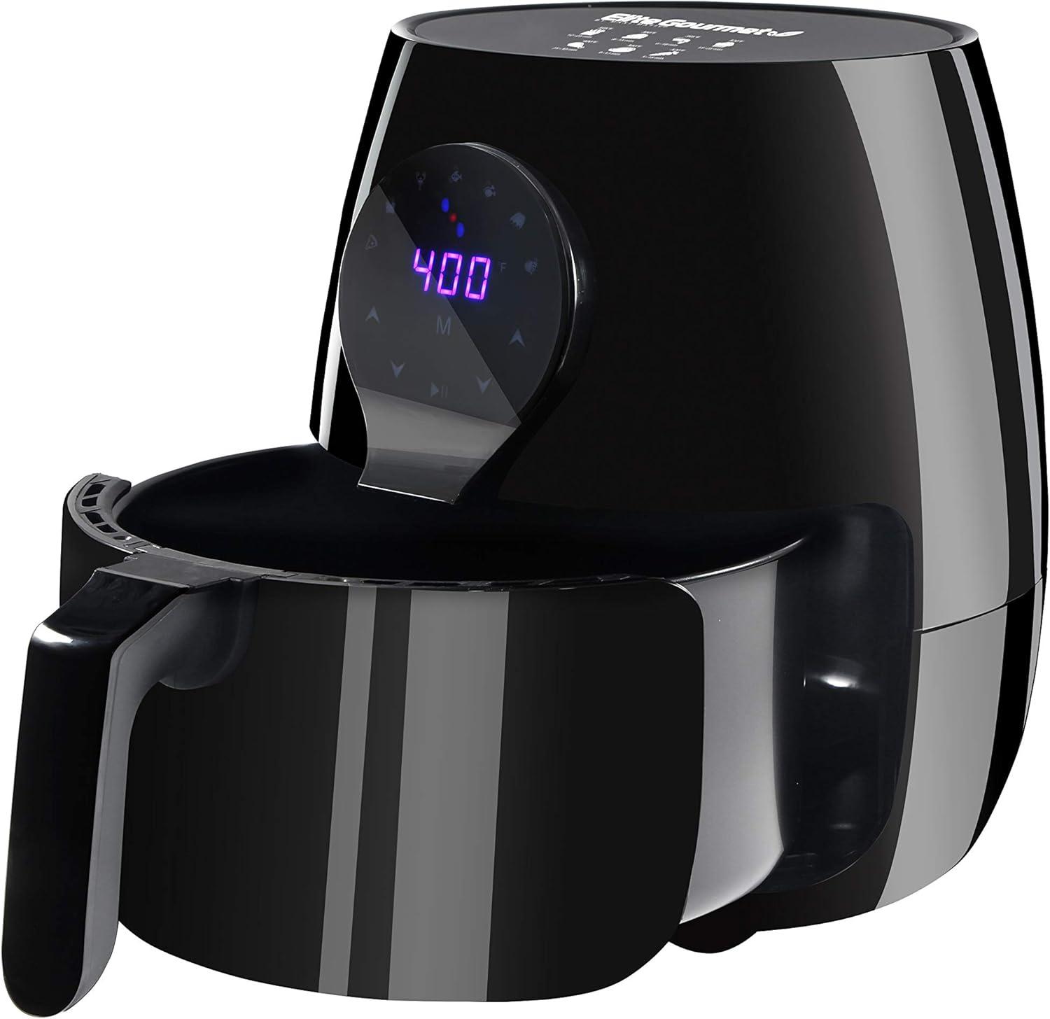Elite Gourmet EAF5317D Digital 5.3Qt Hot Air Fryer 7 Menu Functions 1350W Oil-Less Healthy Cooker, Timer & Temperature Controls, PFOA/PTFE Free, Black(4.0 Quart)
