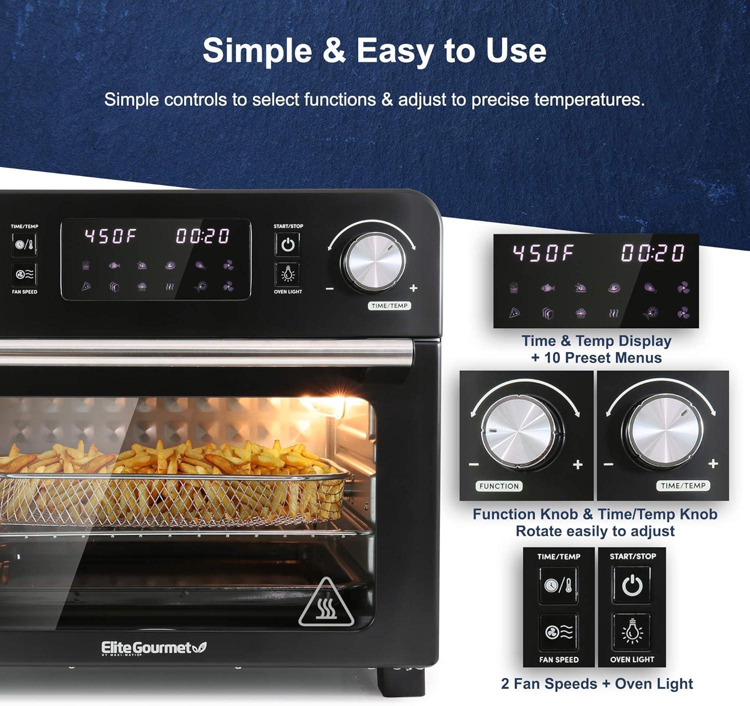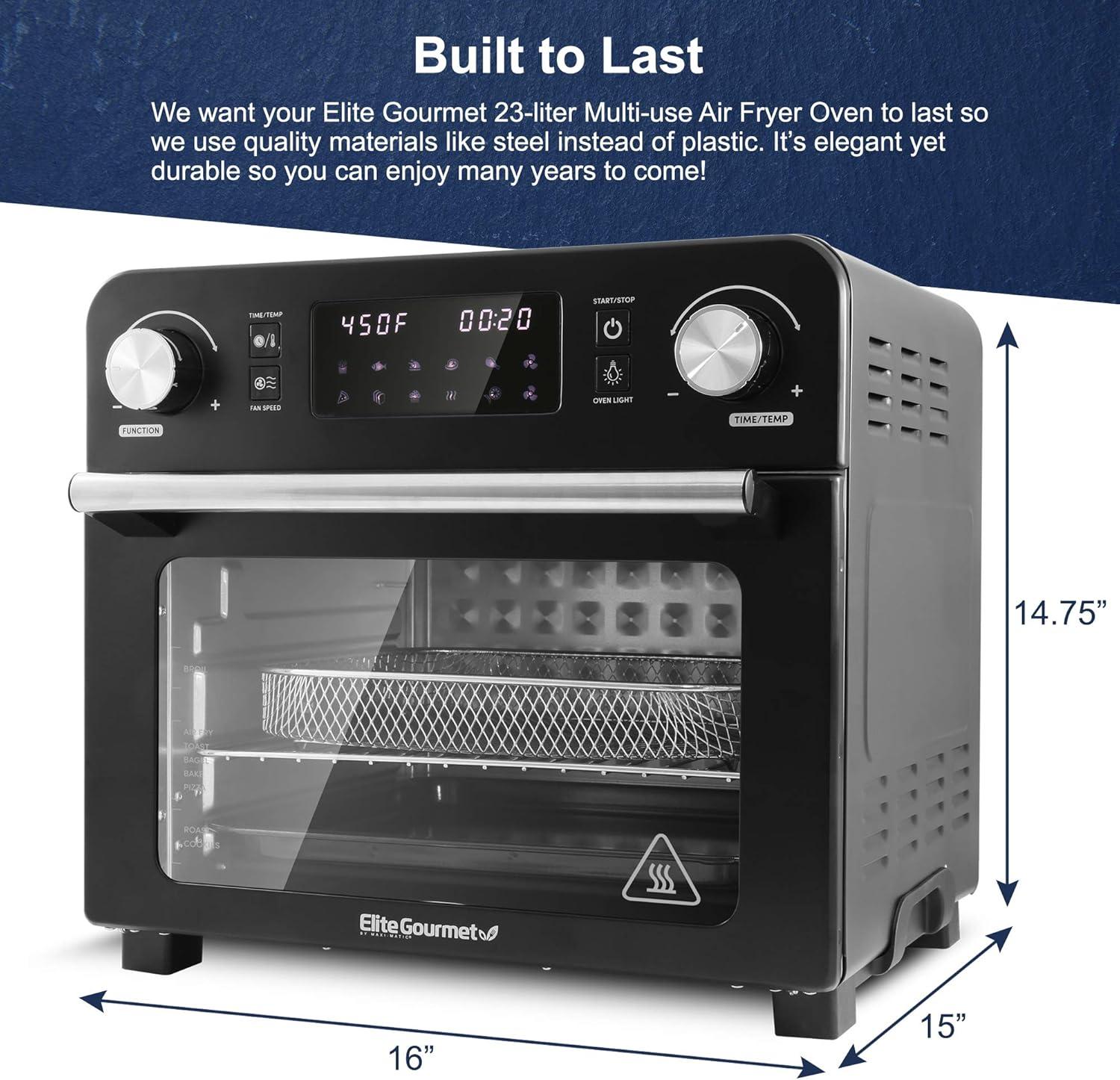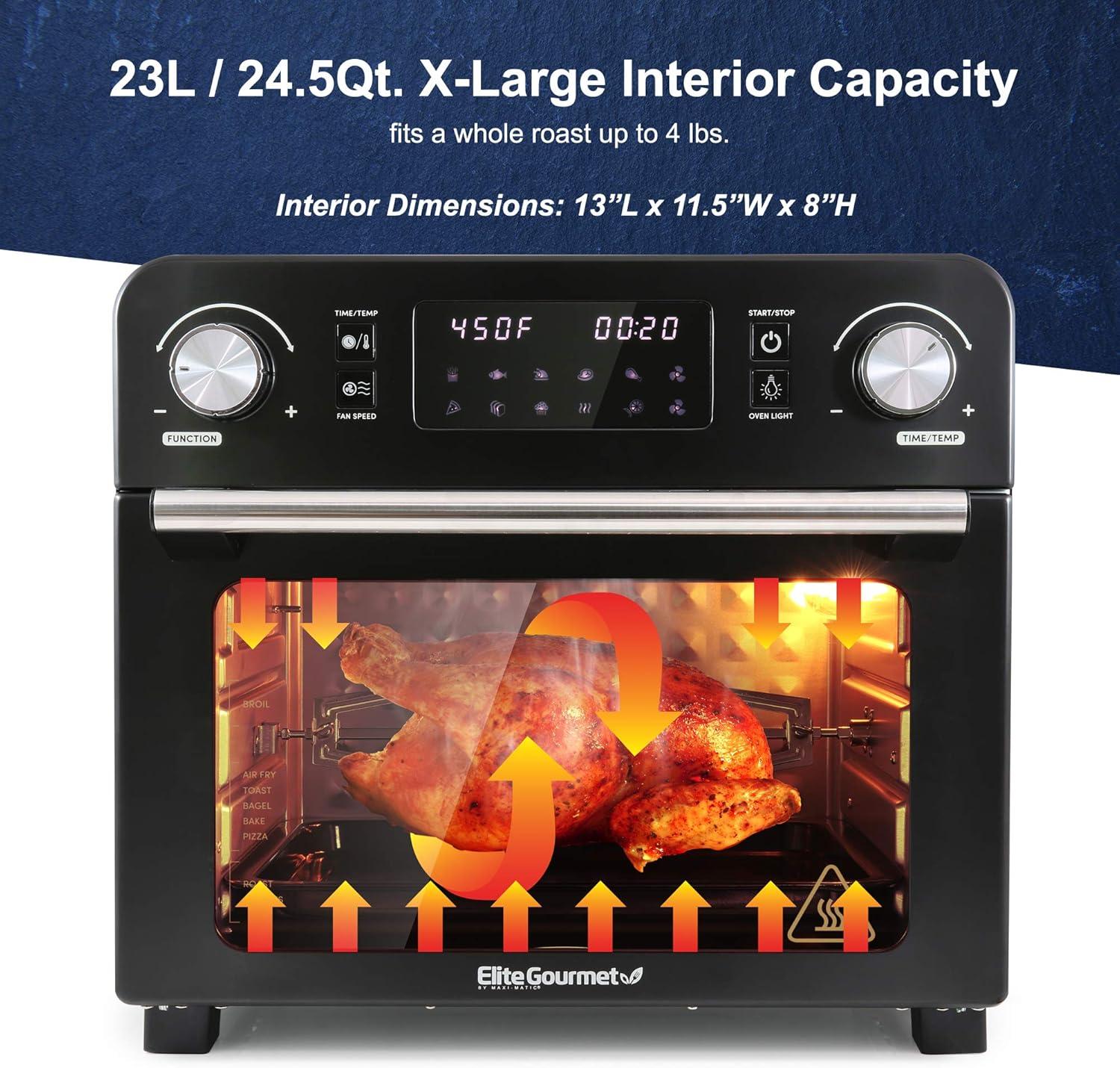 Elite Gourmet EAF9310 Digital Programmable Fryer Oven, Oil-Less Convection Oven Extra Large 24.5 Quart Capacity, fits 12″ pizza, Grill, Bake, Roast, Air Fry, 1700-Watts, Black(24.5 Qt.)