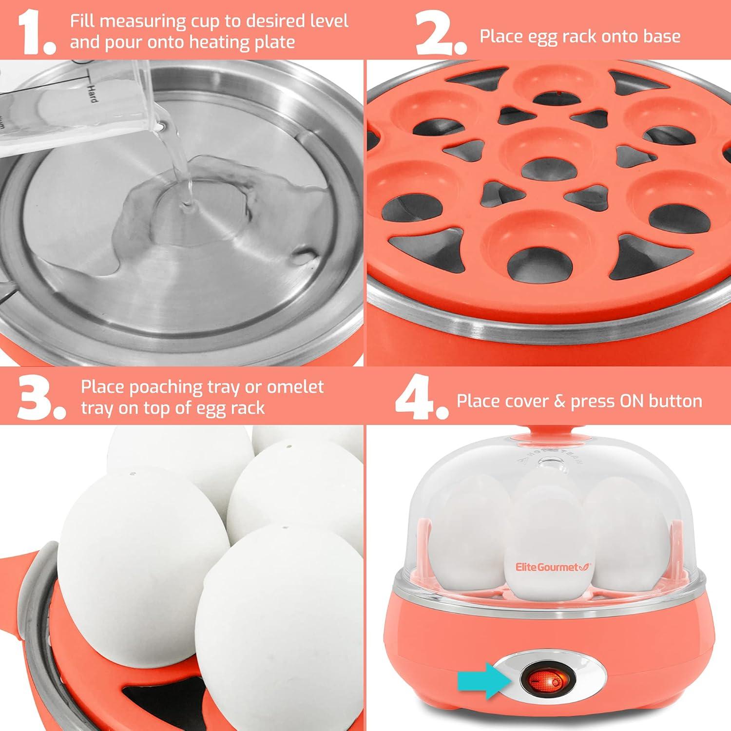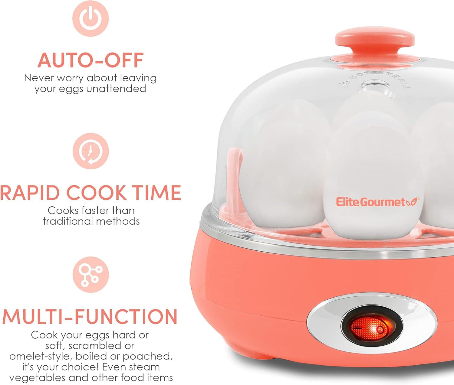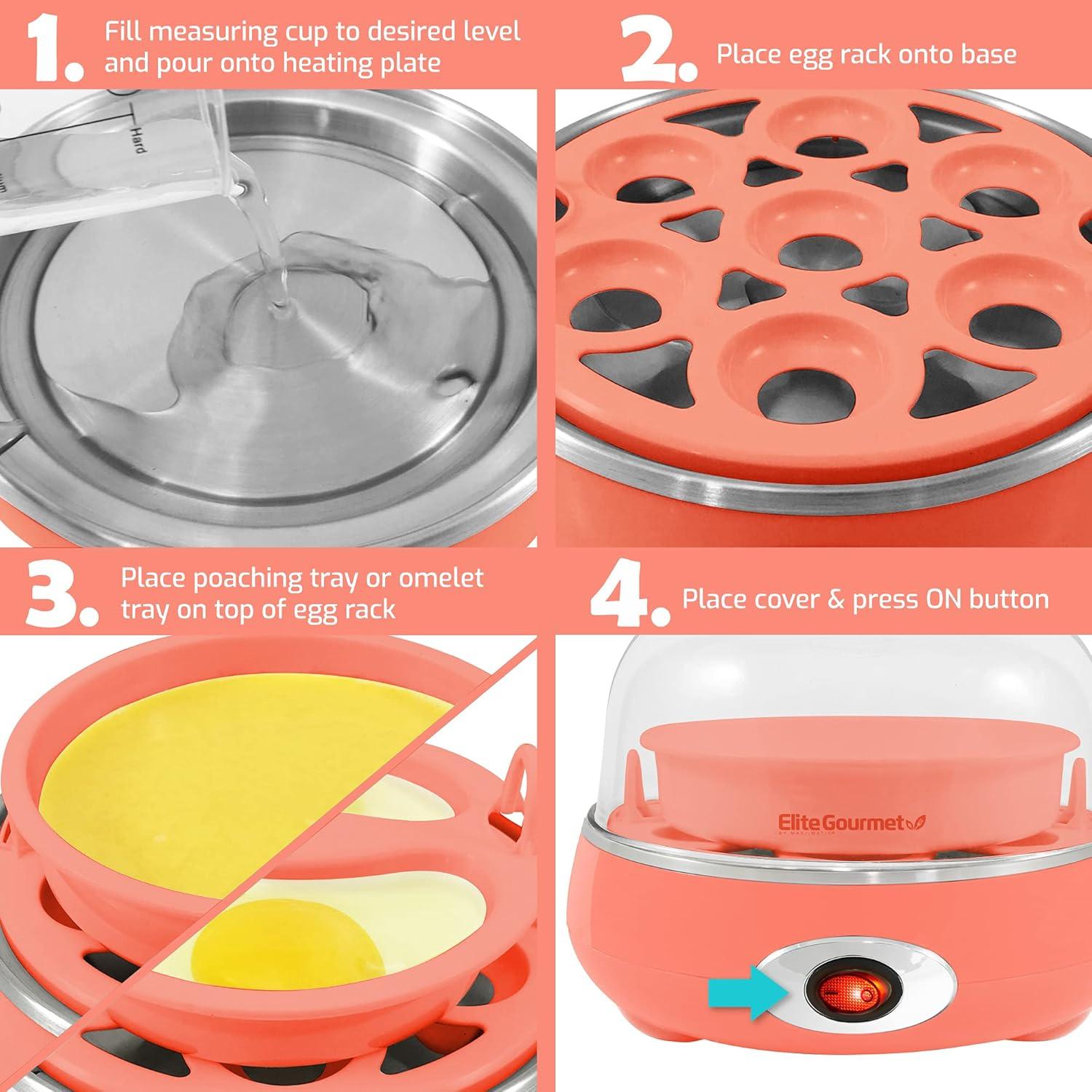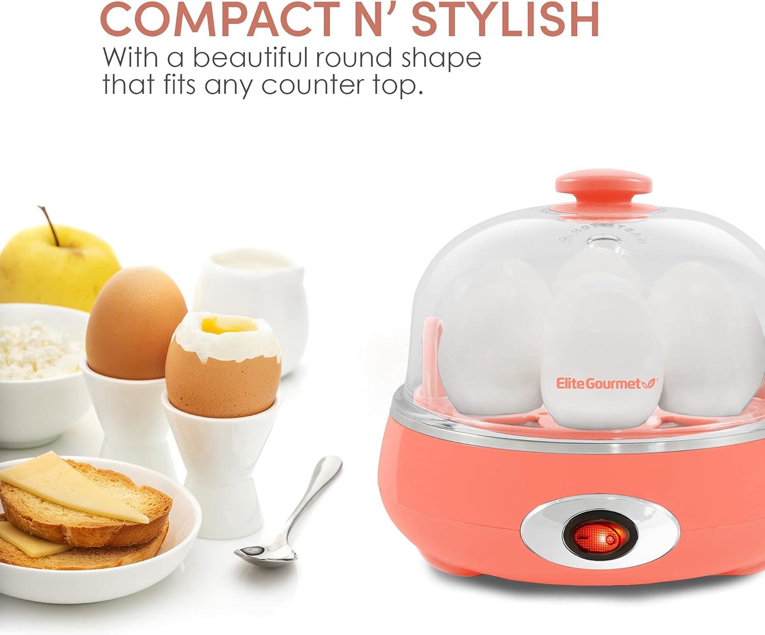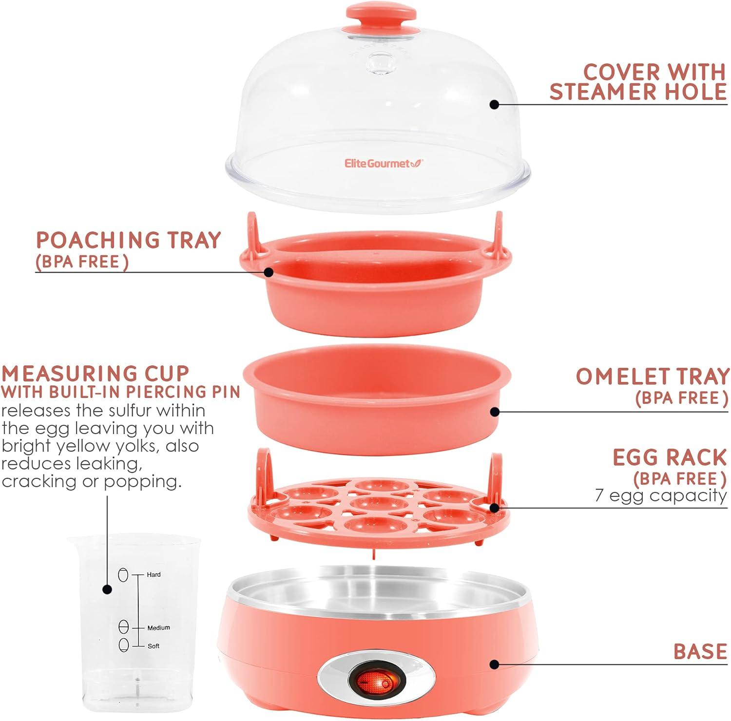 imageElite Gourmet Easy Electric 7 Egg Capacity Cooker Poacher Omelet Maker Scrambled Soft Medium Hard Boiled with Auto ShutOff and Buzzer BPA Free Charcoal GreyCoral