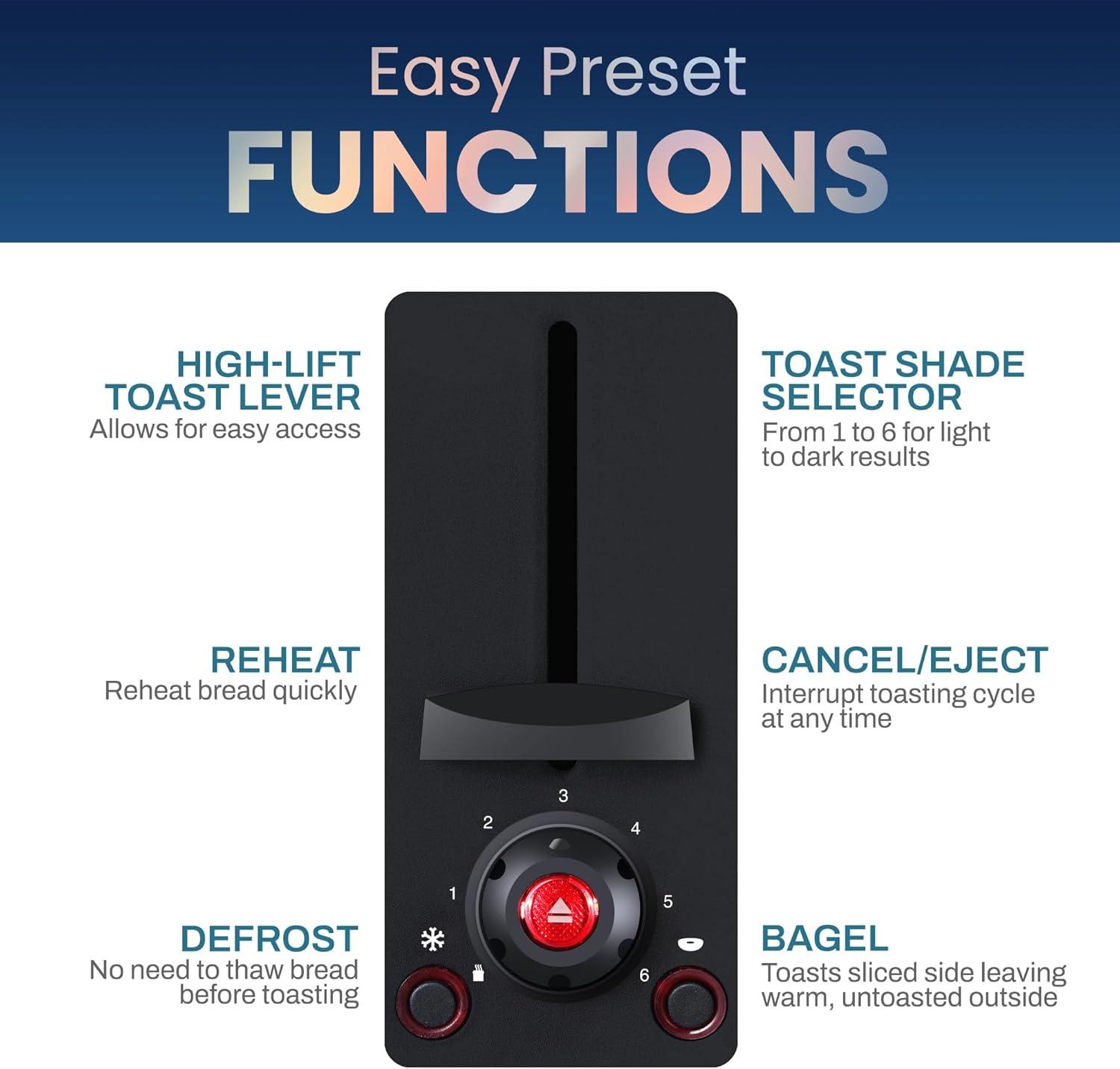 TOAST-IQ INTELLIGENT TECHNOLOGY that auto-adjusts toasting time automatically based on internal thermostat setting.