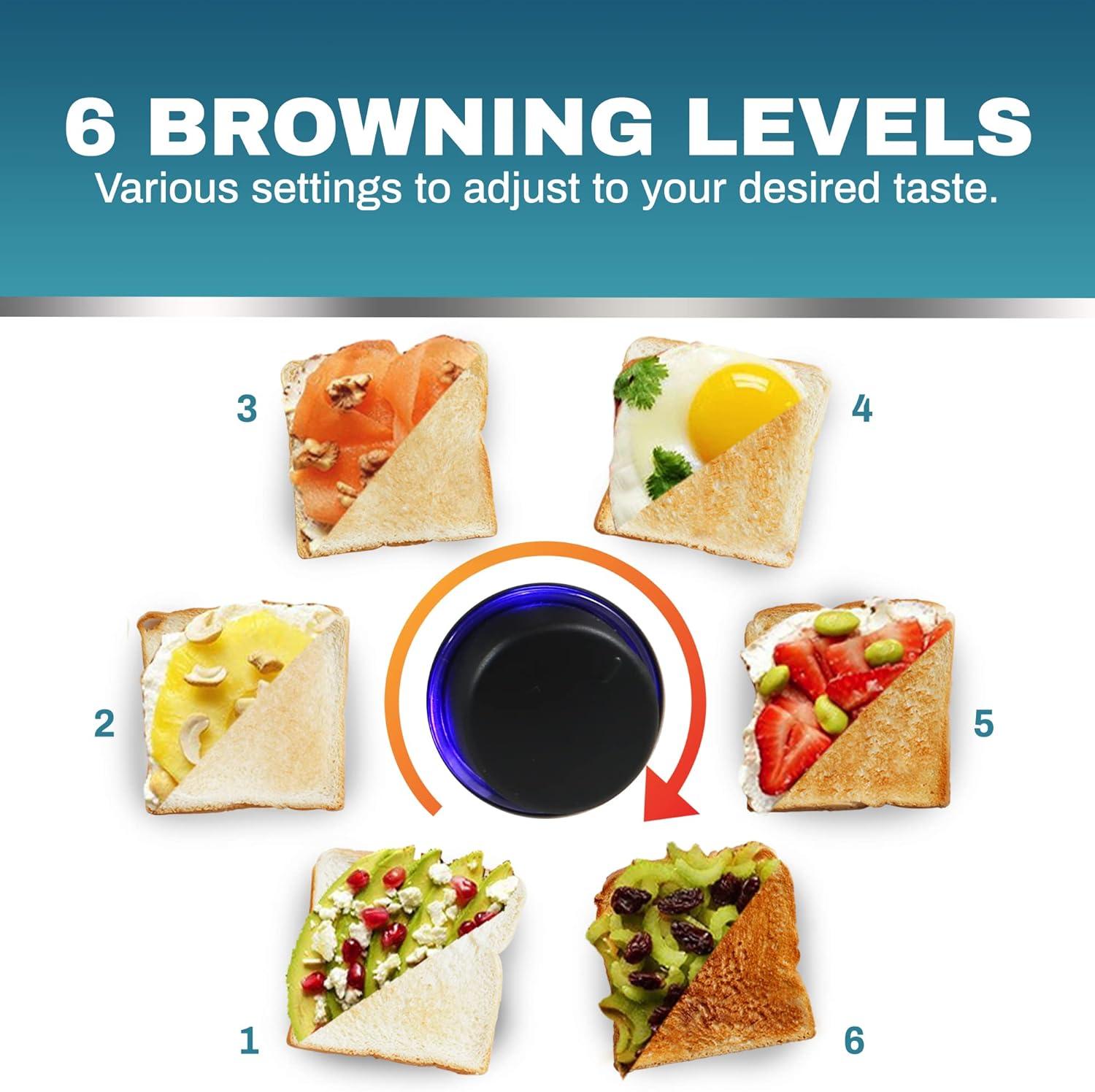 6 ADJUSTABLE TOASTING LEVELS WITH LED DISPLAY to select the perfect browning shade for your bread with Countdown Timer.