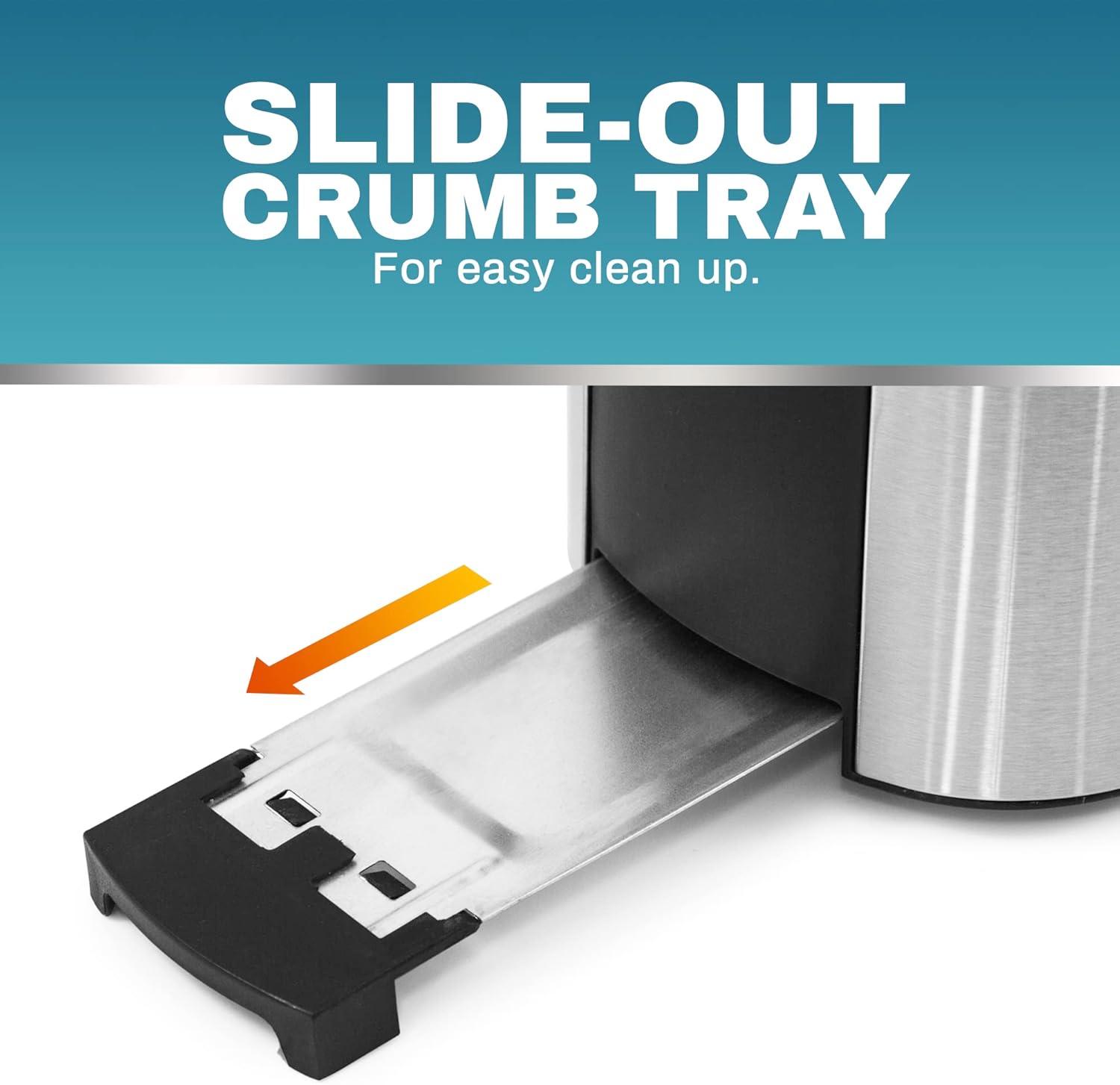 2 EXTRA WIDE 1.25″ TOASTING SLOTS to fit up to 4 extra thick slices of bread products such as Texas Toast, bagels and specialty breads.
