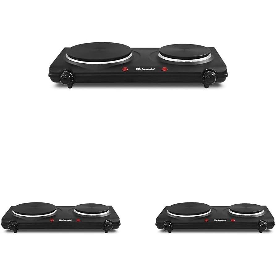 Elite Gourmet EDB-302BF Countertop Double Cast Iron Burner, 1500 Watts Electric Hot Plate, Temperature Controls, Power Indicator Lights, Easy to Clean, Black(Cast Double (Pack of 3))