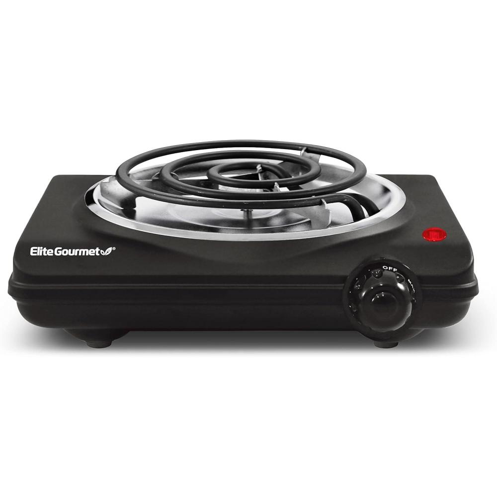 Elite Gourmet EDB-302BF# Countertop Double Cast Iron Burner, 1500 Watts Electric Hot Plate, Temperature Controls, Power Indicator Lights, Easy to Clean, Black(Single Coil)