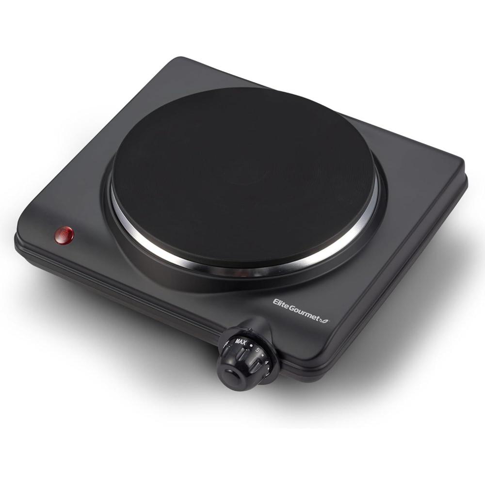Elite Gourmet EDB-302BF# Countertop Double Cast Iron Burner, 1500 Watts Electric Hot Plate, Temperature Controls, Power Indicator Lights, Easy to Clean, Black(Single Coil)
