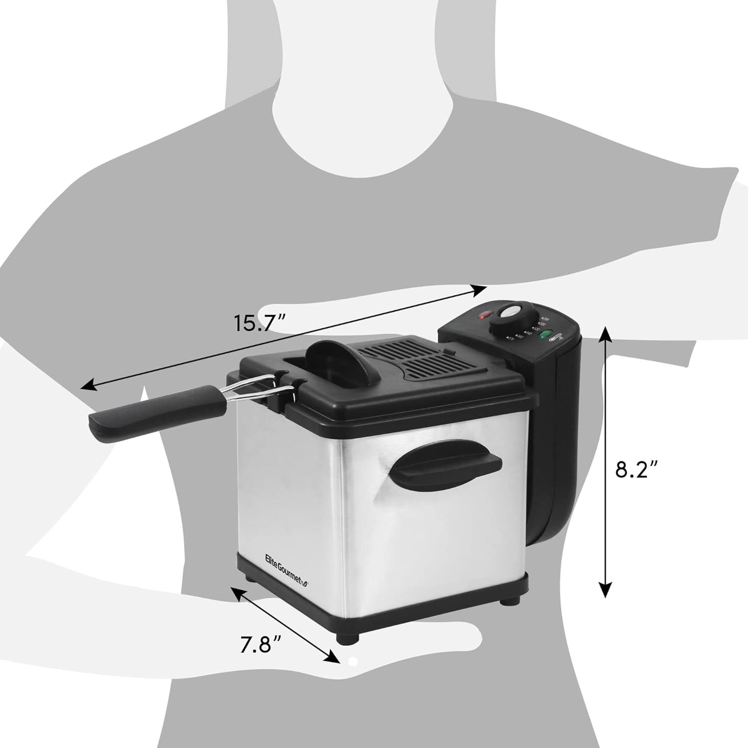 Elite Gourmet EDF1607# 800-Watt Mesh Basket 1.6 Quart / 6.5 Cup Oil Capacity, Electric Immersion Deep Fryer with Temperature Knob and Lid with View Window, stainless steel(2 Quart / 8.2 cup)