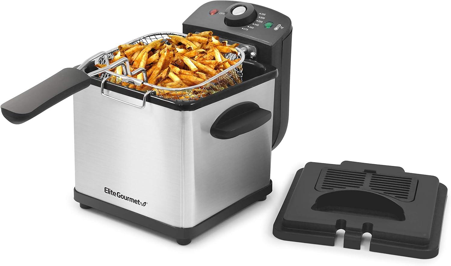 Enjoy all of your favorite foods with the Elite Gourmet 1.6Qt Deep Fryer. With its beautiful brushed stainless steel exterior, this deep fryer is an absolute necessity to any modern home kitchen. It features a thermostat knob that heats up to 375°F so you can cook anything from French fries to fried zucchini or from buffalo wings to onion rings. It's 1.6-quart. allows you to cook up to 4.5lb. of food per batch. Emel non-stick removable inner container that is full immersible. Vented cool-touch lid for added safety. Separate power and ready indicator lights to let you know when oil is ready. Also includes a replaceable filter to elimite unwanted grease and oil odors. EASY TO CLEAN: The fry basket with resting hook provides easy draige of excess oil from food. The heating element easily removes for cleaning. The lid, fry basket and oil pan are dishwasher safe. US-BASED Customer Support Team lets you buy with confidence. Maxi-Matic has been providing quality products for over 35 years, send us a message or call our Toll-Free number in the instruction manual and a Customer Care Rep will respond within 1 business day.