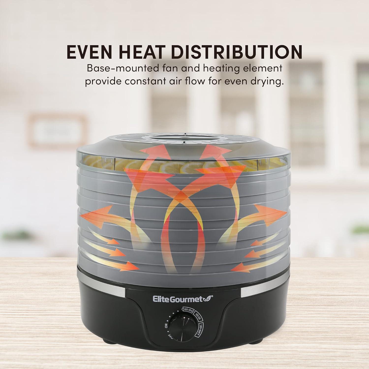 Elite Gourmet EFD-313B Programmable Food Dehydrator, Food Dehydrator, Adjustable Temperature Controls, Jerky Herbs Fruit Veggies Snacks, 6 Stainless Steel Trays(5 Plastic Trays)