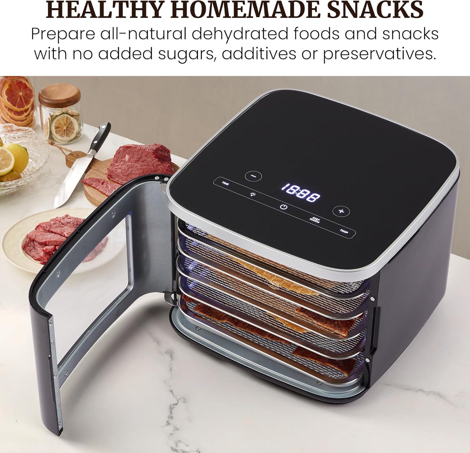 Precision Drying with Digital Controls: Customize your dehydration process with a wide digital temperature range from 95°F to 194°F and a timer that runs up to 48 hours. Whether you're drying herbs, jerky, or fruit, the intuitive controls make it easy to set the perfect temperature and time for every ingredient.