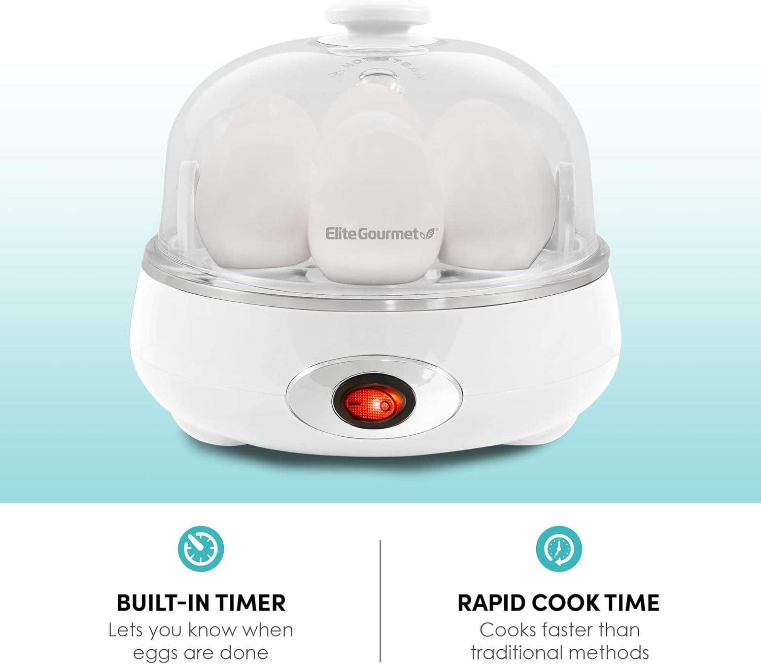 Elite Gourmet EGC322CW Easy Egg Cooker Electric 7-Egg Capacity, Soft, Medium, Hard-Boiled Egg Cooker with Auto Shut-Off, Measuring Cup Included, BPA Free, Classic White(Classic White)