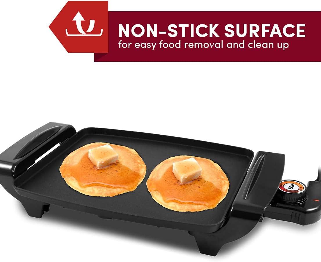 NOT JUST FOR BREAKFAST: Enjoy pancakes, french toast, eggs, bacon, burgers, grilled cheese, saute vegetables, veggie burgers, quesadillas and much more all with one electric appliance.