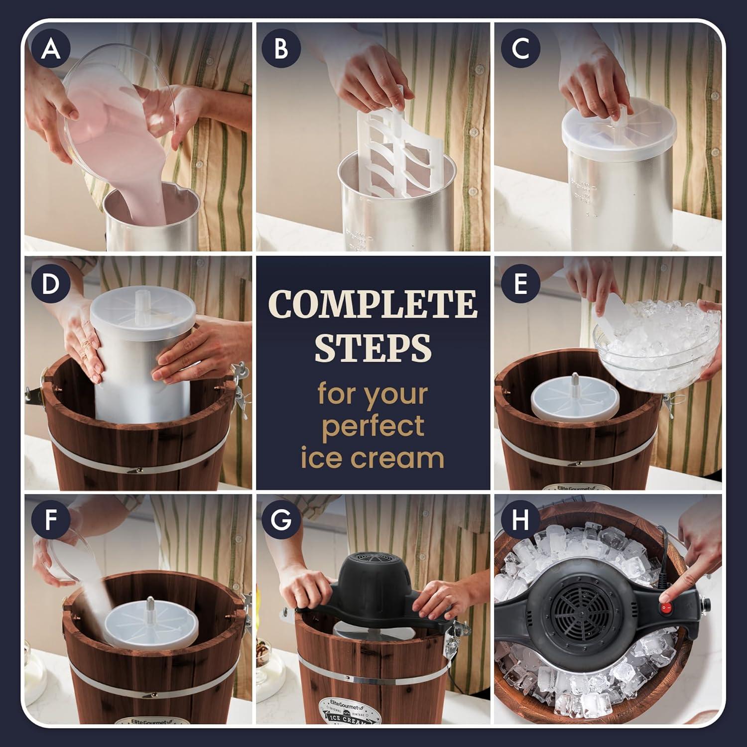 Elite Gourmet EIM418 Old Fashioned 4 Quart Vintage Walnut Wood Bucket, Electric Ice Cream Maker Machine, Uses Ice and Rock Salt Churns Ice Cream in Minutes(Pine)