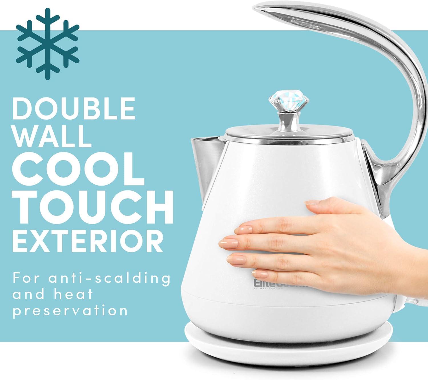 Elite Gourmet EKT-1203W 1350W Double Wall Insulated Cool Touch Electric Water Tea Kettle, BPA Free Stainless Steel Interior and Auto Shut-Off(1.4 Quarts)