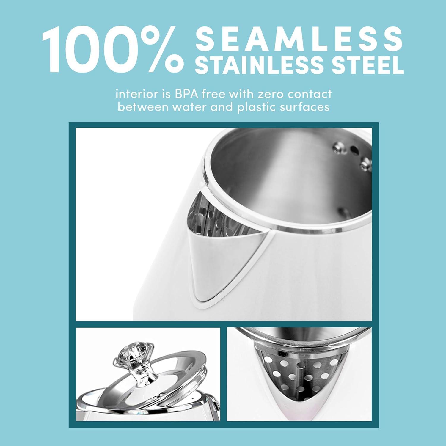Elite Gourmet EKT-1203W 1350W Double Wall Insulated Cool Touch Electric Water Tea Kettle, BPA Free Stainless Steel Interior and Auto Shut-Off(1.9 Quarts)