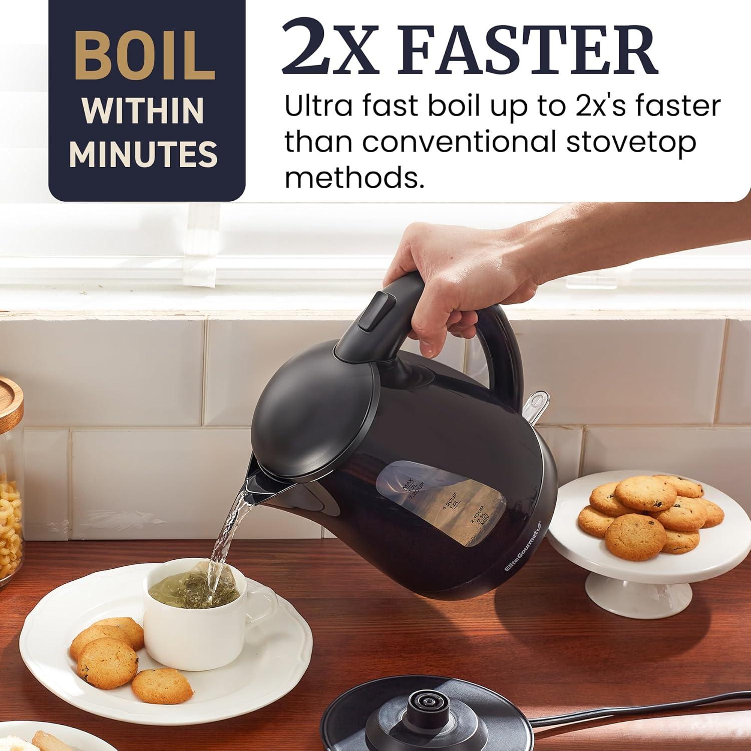 Elite Gourmet EKT1001 Electric 1.0L BPA-Free 1100W Glass Kettle Cordless 360° Base, Stylish Blue LED Interior, Handy Auto Shut-Off Function – Quickly Boil Water For Tea & More, Black(Stainless Steel)