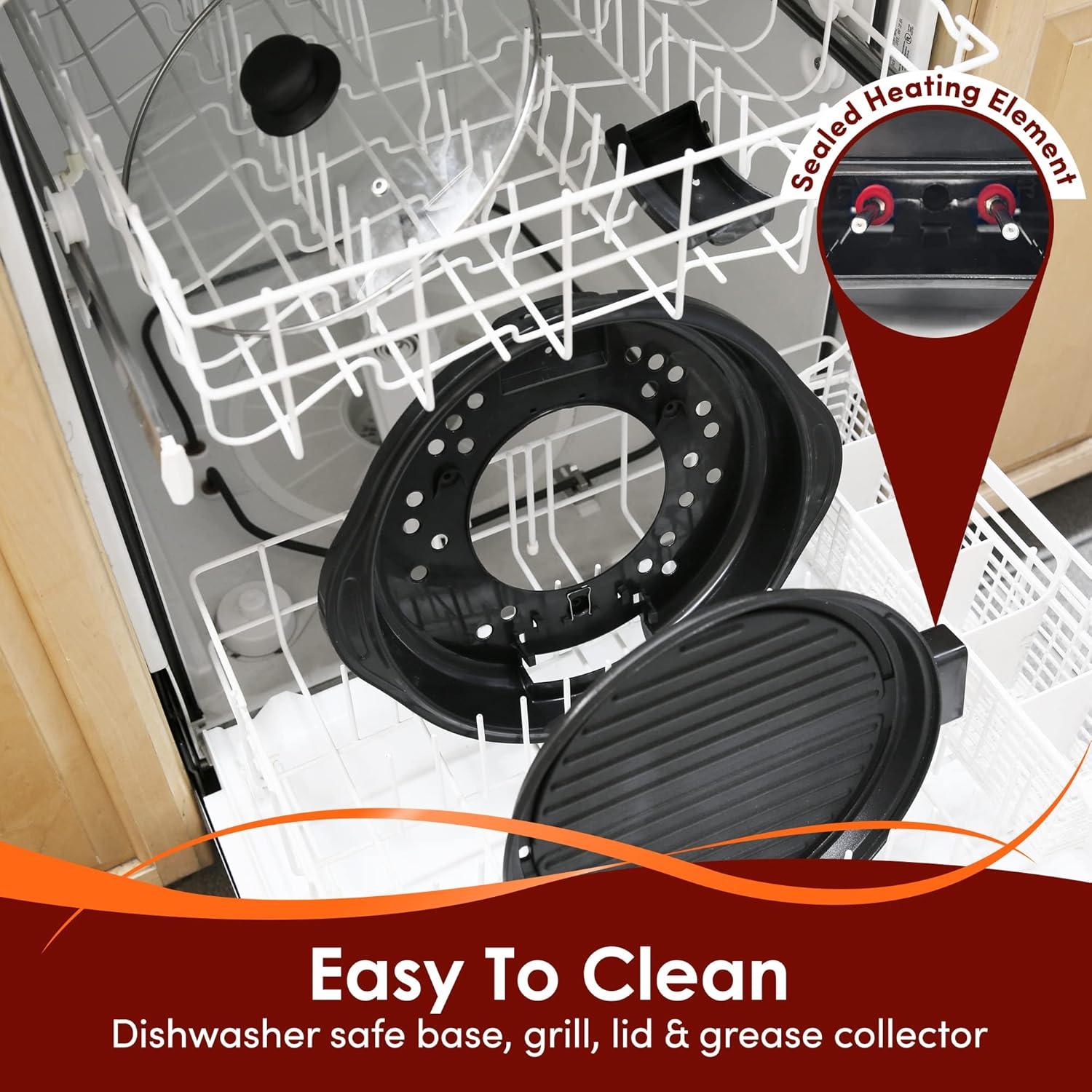 DISHWASHER SAFE PARTS – We know that cleaning your grill can be extremely frustrating, that’s why we’ve made sure that all parts of our electric grill are detachable and dishwasher safe (except for the removable temperature probe). Now you can spend less time cleaning up and more time enjoying your delicious grilled food!