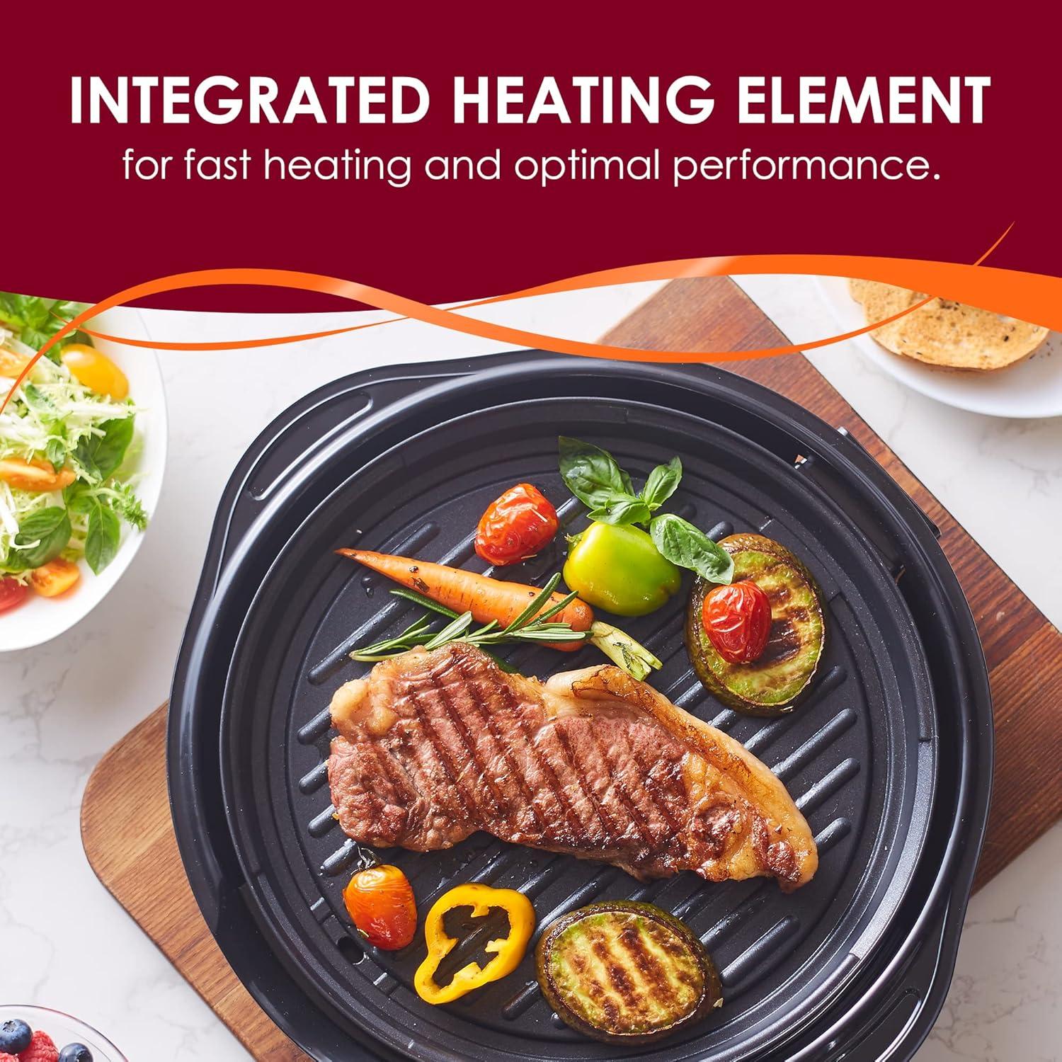 SAVE TIME & GRILL ALL YOUR FAVORITE FOODS INDOORS! – Now you can throw steaks, veggies, ribs or your favorite cut of salmon on the 11″ grilling surface! And thanks to its reliable nonstick coating, you’ll never have to deal with stuck food again! Plus, there’s a removable 120V/1400W thermostat control with adjustable settings up to 425°F.