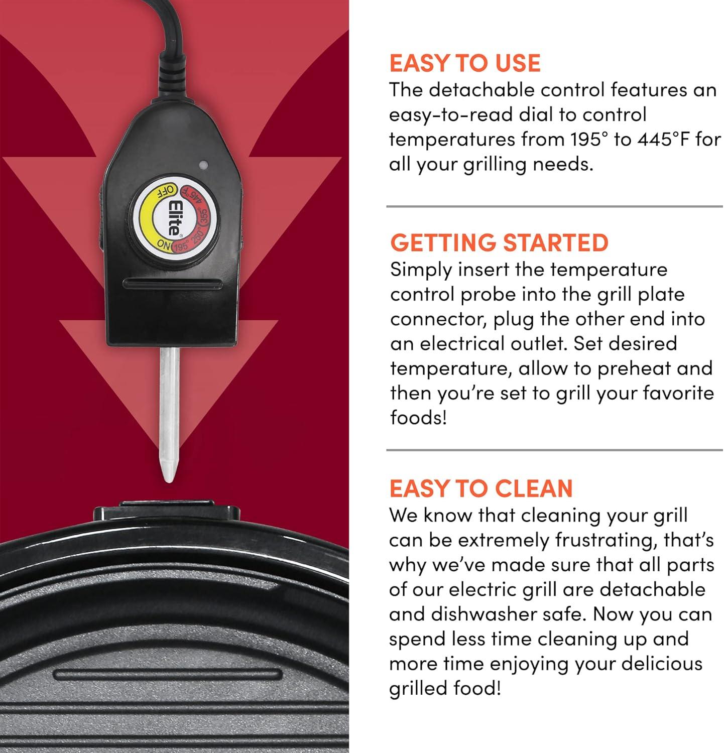 imageElite Gourmet EMG1100 11quot Electric Indoor Nonstick Grill Dishwasher Safe Cool Touch Fast Heat Up Ideal LowFat Meals Includes Tempered Glass Lid Black14