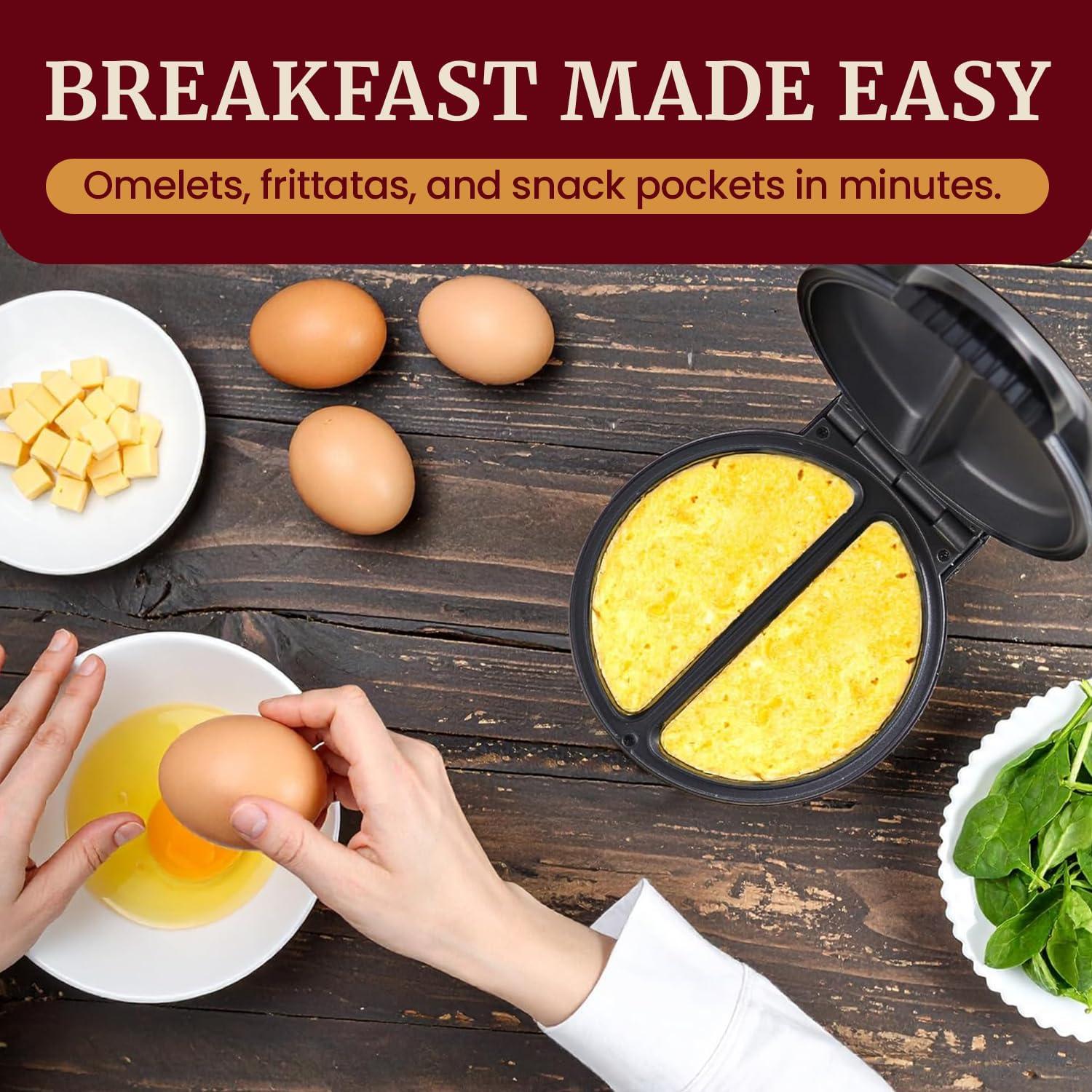 GOURMET BREAKFAST MAKER makes perfect omelets, frittatas, quiches, and snack pockets for those who love fancy breakfasts.
