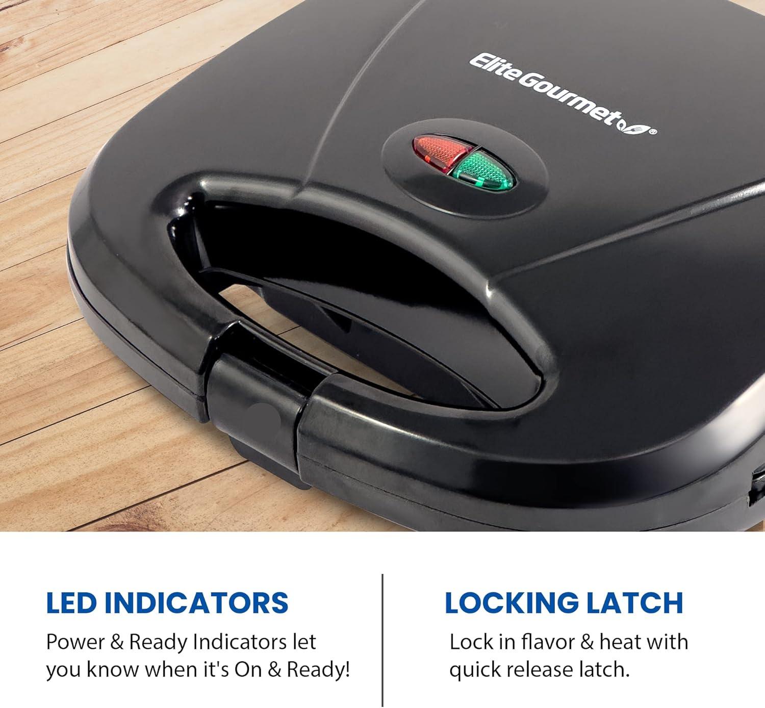 Elite Gourmet EPN-2976# 2-in-1 Nonstick Panini Press & Indoor Grill, Opens 180-Degree Gourmet Sandwich Maker, Floating Hinge Fits All Foods, Contact Grill with Removable Grease Tray(Black)
