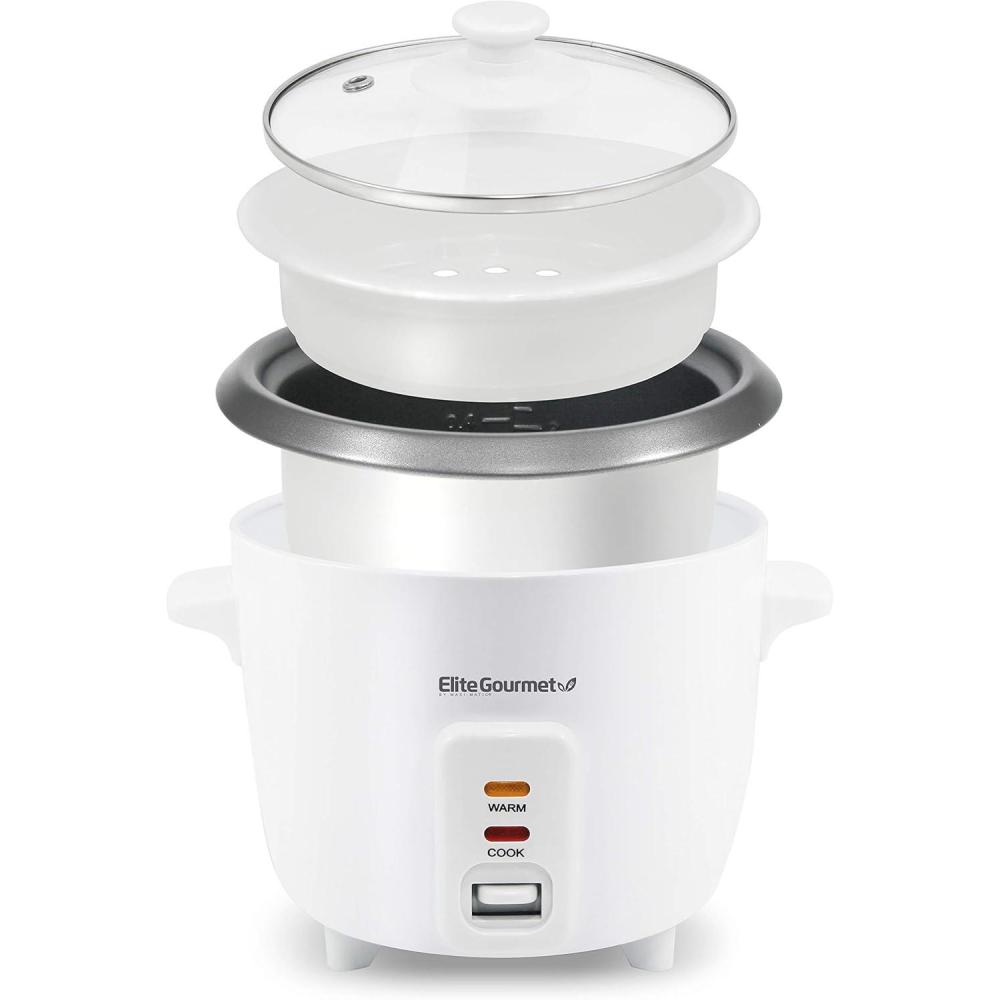 Elite Gourmet ERC006SS 6-Cup Electric Rice Cooker with Stainless Steel Inner Pot, Makes Soups, Stews, Porridges, Grains and Cereals, 6 cup (3 cups uncooked), Black(White)