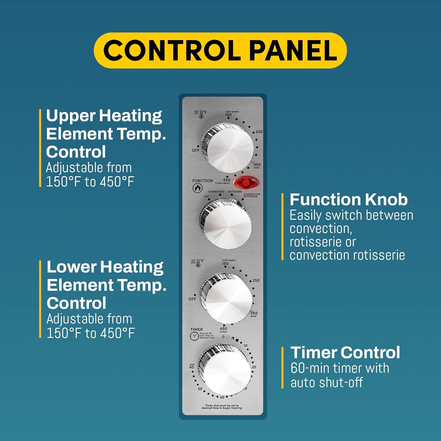 Introducing the Elite Gourmet Double Door countertop oven, The perfect stand-in or supplement to conventional ovens. This dual door Rotisserie and convection oven will have you forget about your traditional oven altogether! Toast, bake, broil, and Rotisserie your way to delicious, hearty meals and decadent desserts – this oven can do it all! The spacious interior boasts 4 rack positions so you can bake 2 x 12″ Pizzas, warm dinner rolls, and broil a casserole all at the same time! With heating elements on top and bottom that can be independently turned on using the separate temperature dials, a 60-minute timer, and a function dial, This oven really has the versatility you've been waiting for. Includes French-style doors, an interior light, 2 x wire racks, 1 enamel bake tray, a tray handle, Rotisserie set and handle and a crumb tray. Removable parts are all dishwasher safe. Avoid heating up your kitchen with a big conventional oven, save time and use less energy with the Elite Gourmet Double Door countertop oven, The perfect supplement for the holidays when your kitchen needs goes on double duty!