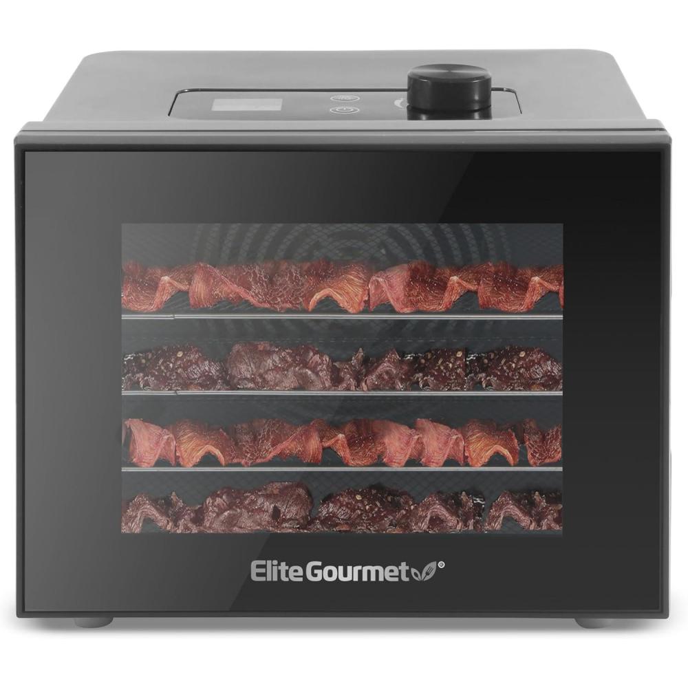 Elite Gourmet Food Dehydrator, Stainless Steel Trays Food Dehydrator, Adjustable Temperature Controls, Jerky Herbs Fruit Veggies Snacks(4 Plastic Trays)