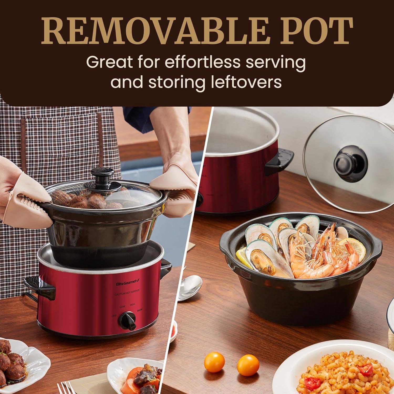 Elite Gourmet MST-275XP Electric Oval Slow Cooker, 2Qt Capacity, Purple(Metallic Red)
