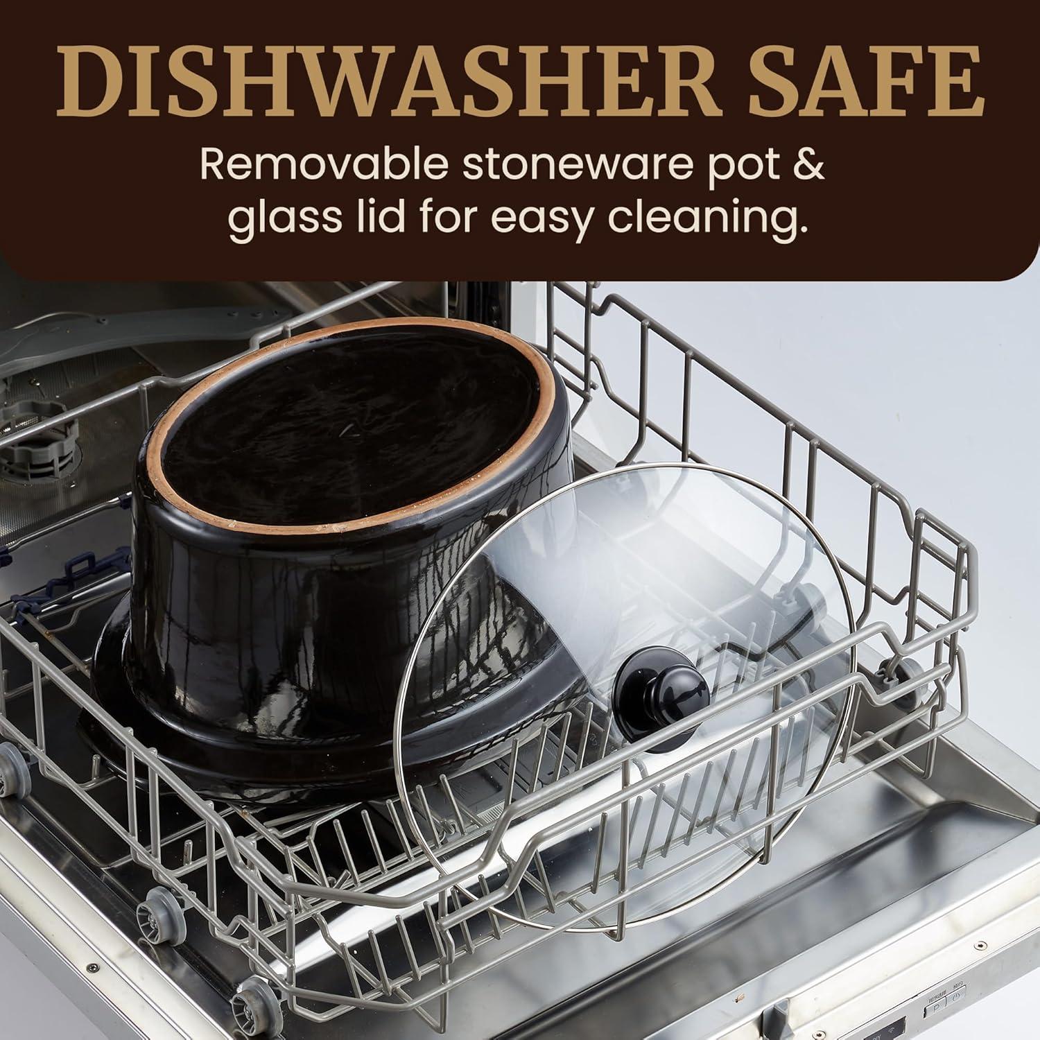 FAST, EASY CLEAN-UP with our dishwasher-safe clear tempered glass lid and removable oval crock. The brushed stainless steel heating unit can be wiped clean with a damp cloth to maintain its pristine appearance.