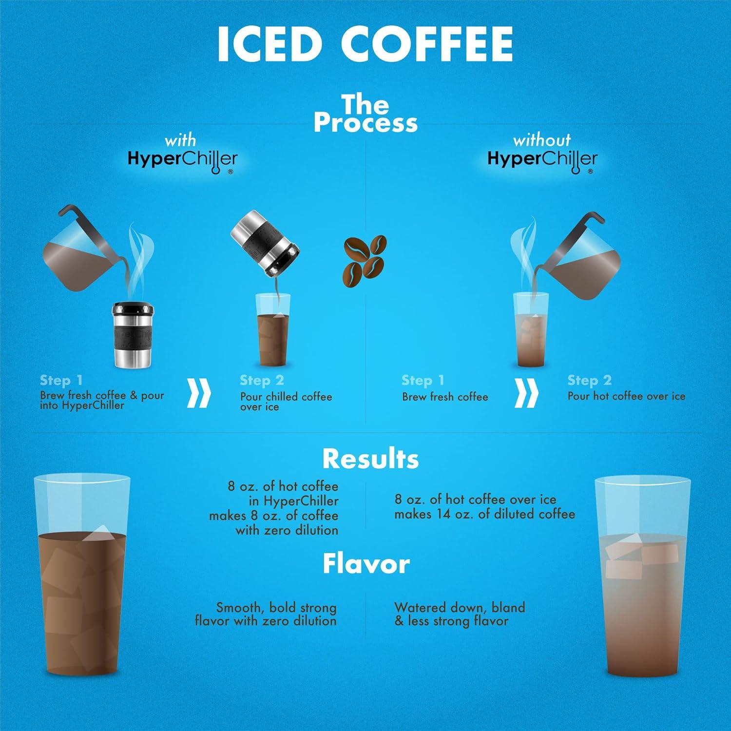 SAVE TIME, NO ICE NEEDED – Having to hit the floor running this morning and don’t have time to prepare your iced Coffee, The HyperChiller will chill your Coffee in less than 60 seconds. Take the edge off a hectic morning by enjoying an Iced Coffee on the go.