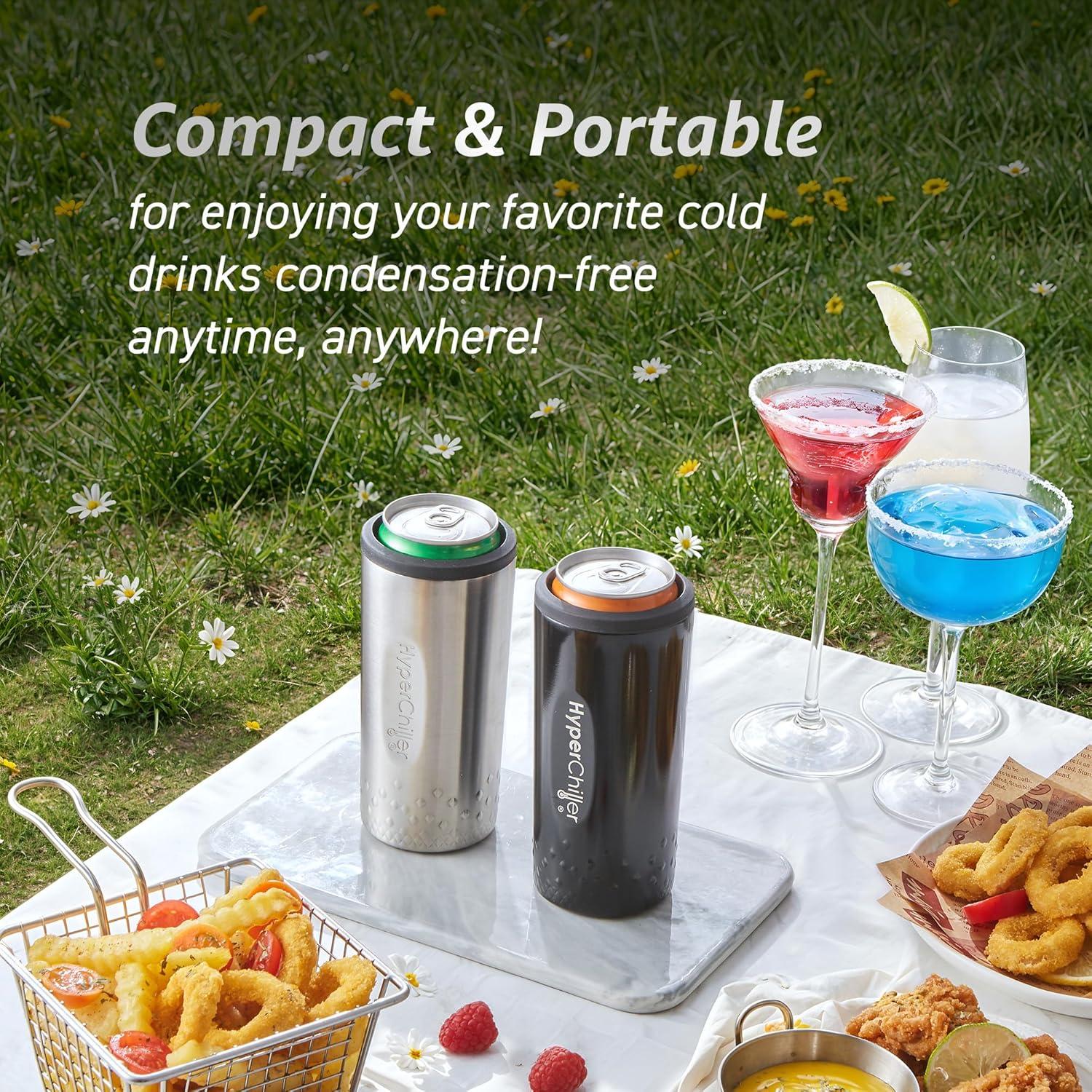 UNMATCHED QUALITY The New HyperChiller SLIM ensures your favorite 12oz slim cans stay refreshingly cold for hours, maintaining the chilling performance you’ve become accustomed to from HyperChiller. Ideal for all standard slim style 12-ounce cans to include soda, seltzer, beer & energy drinks!