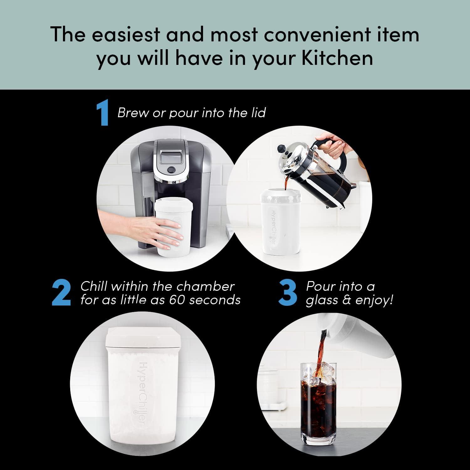 HyperChiller HC3 Patented Iced Coffee/Beverage Cooler, NEW, IMPROVED,STRONGER AND MORE DURABLE! Ready in One Minute, Reusable for Iced Tea, Wine, Spirits, Alcohol, Juice, 12.5 Oz, Black(Aqua Sky)